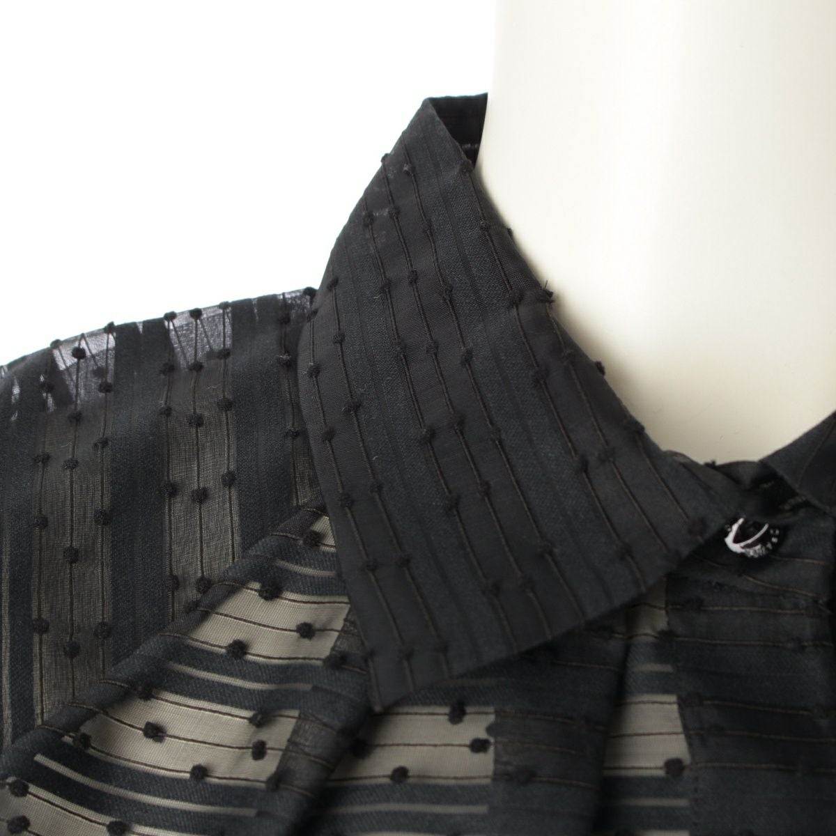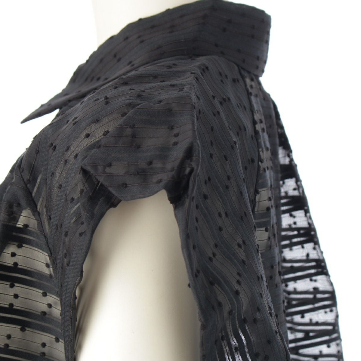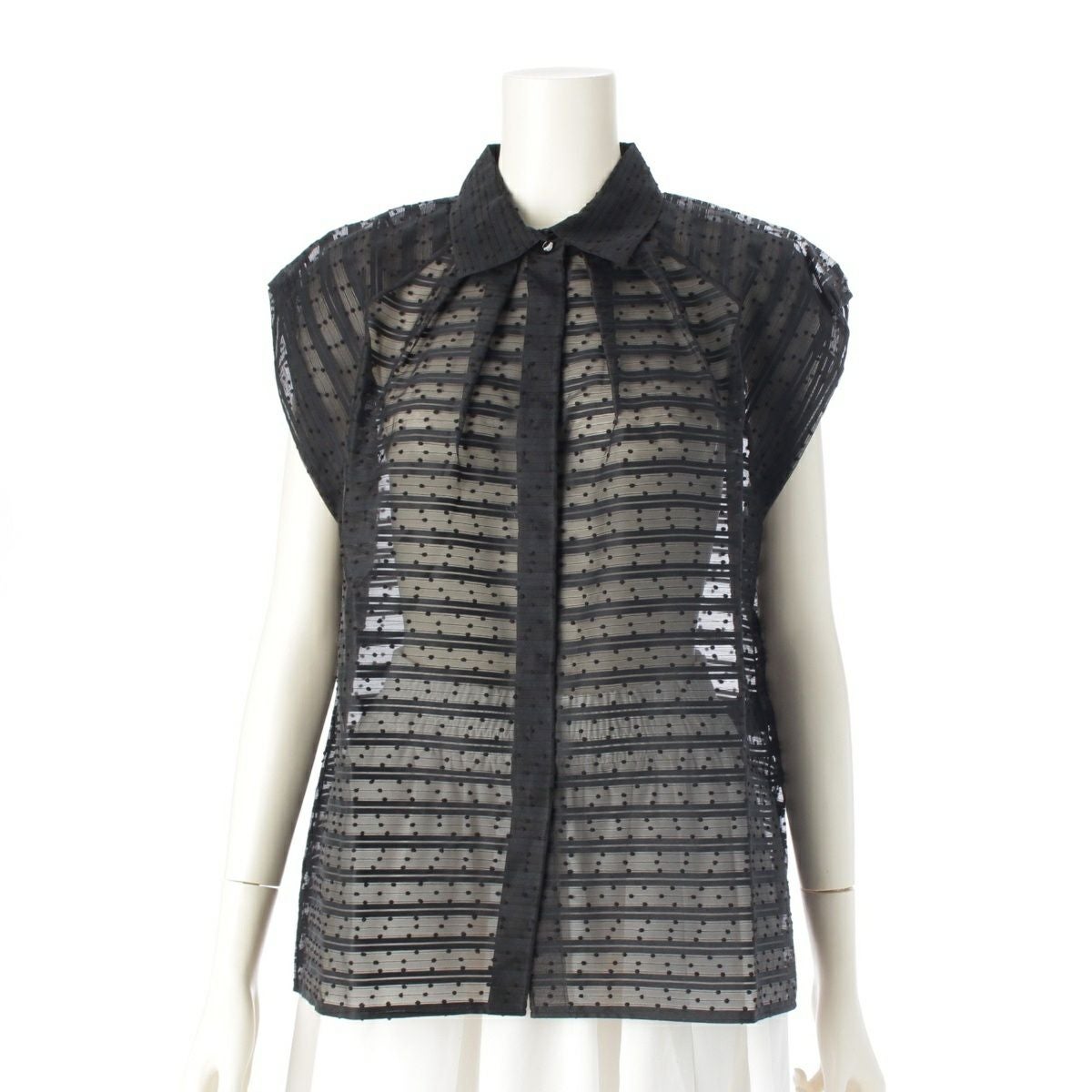 ドゥロワー 24SS コットン ナイロン ボーダージャガード ドットノースリー ブラウス トップス 6521-299-1152 ブラック 36