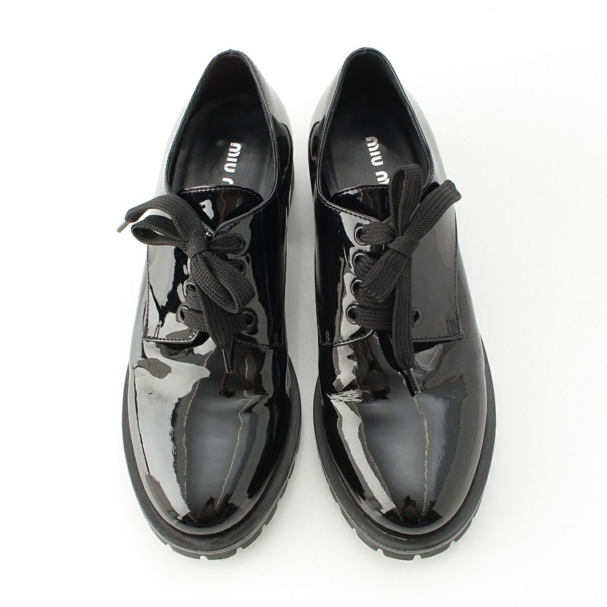 ミュウミュウ エナメル パテント レースアップ ドレス シューズ ブラック 37