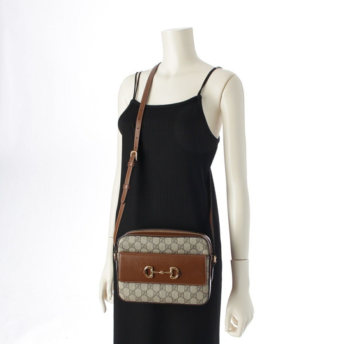 グッチ 1955 ホースビット GGスプリームキャンバス クロスボディ ゴールド ショルダーバッグ 645454 ブラウン