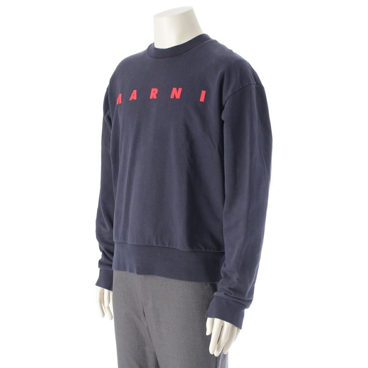 マルニ コットン ロゴ クルーネック トレーナー スウェット トップス ネイビー レッド 44