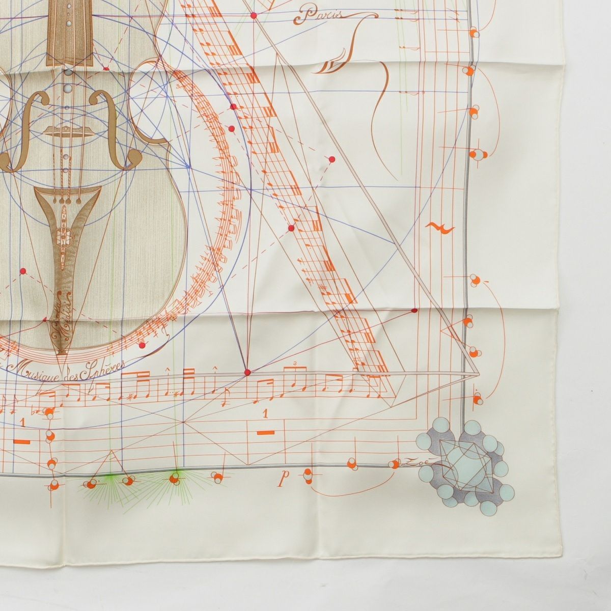 エルメス カレ90 La Musique des spheres 球体が奏でる音楽 シルク スカーフ オフホワイト