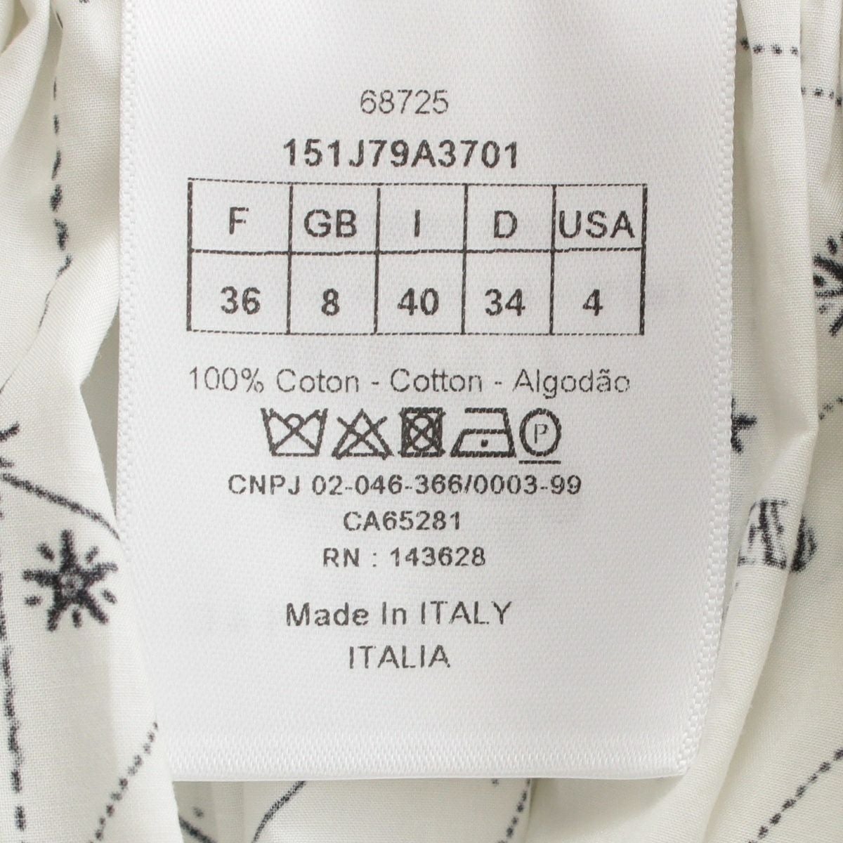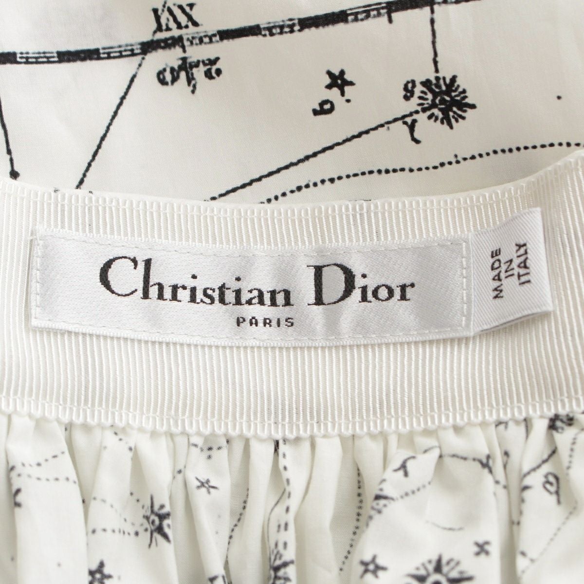 ディオール コットン Zodiac 星座 ゾディアックミディ丈 サイドジップ フレア スカート 151J79A3701 ホワイト F36