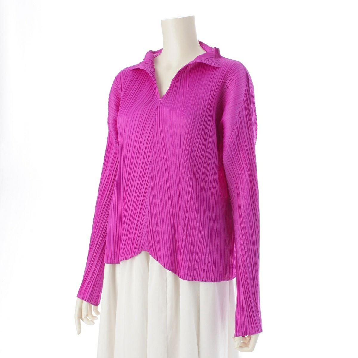 プリーツプリーズ イッセイミヤケ Vネック スキッパー ロングスリーブ カットソー トップス PP23-JJ182 パープル 3