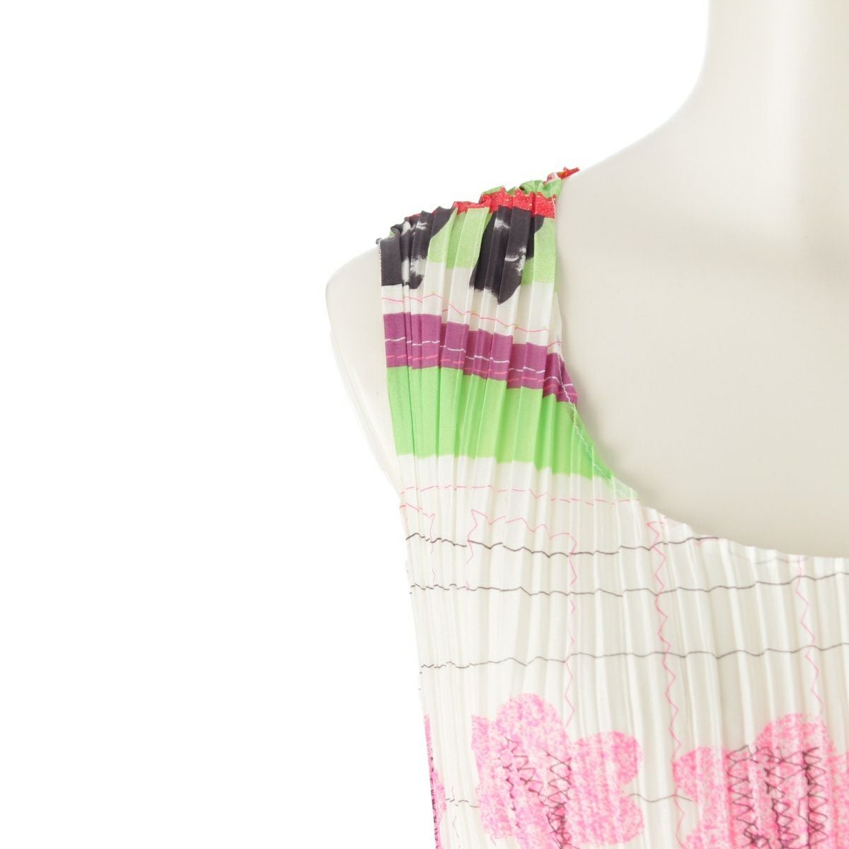 イッセイミヤケ 総柄 ノースリーブ ワンピース ドレス IM04FH926 ホワイト 2