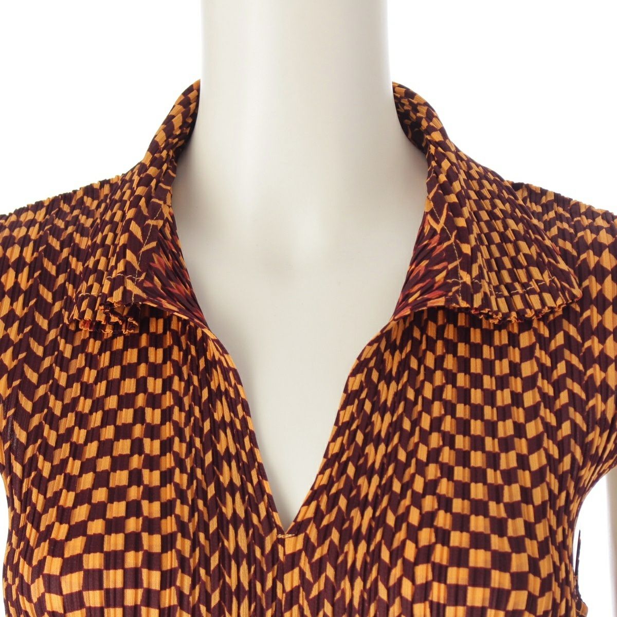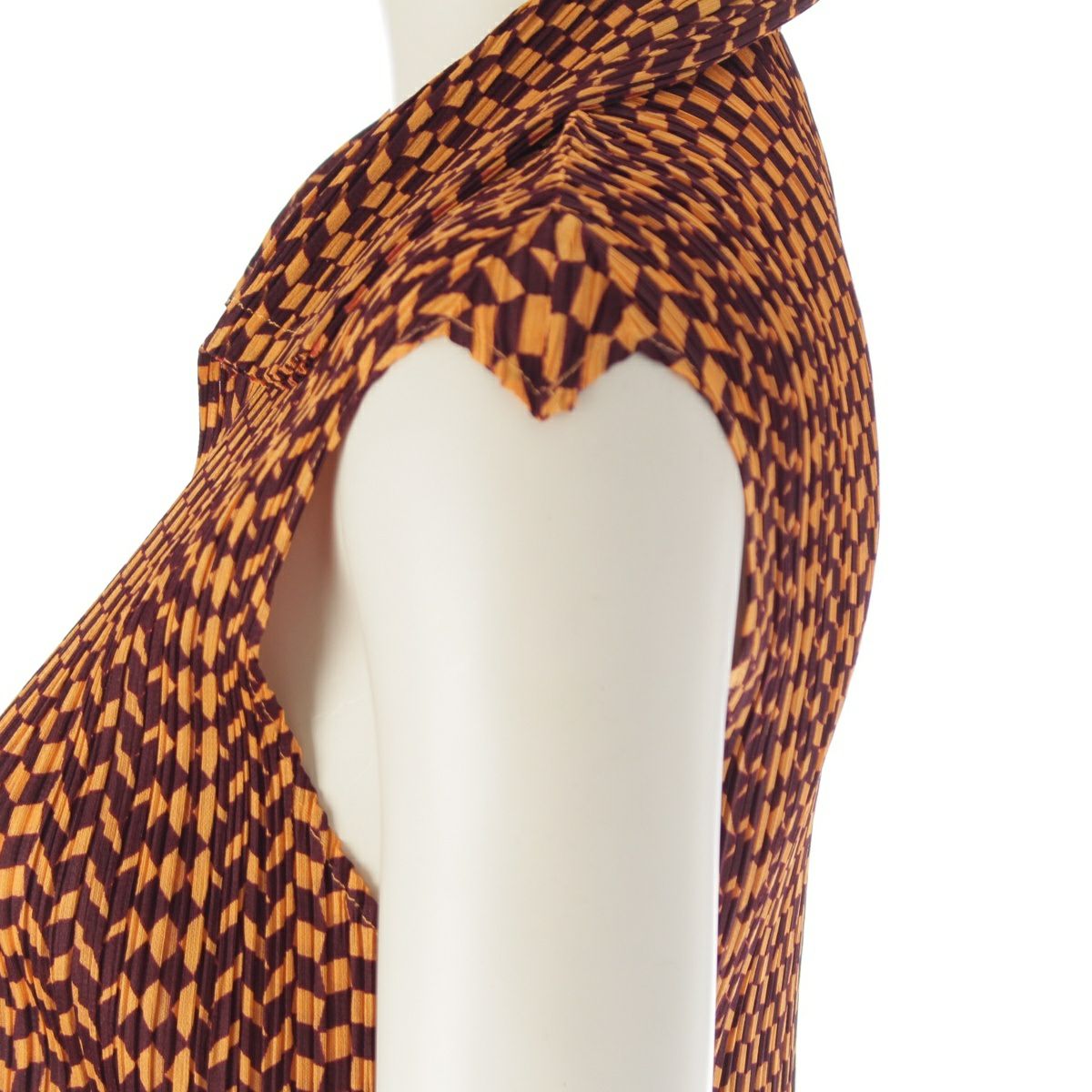 プリーツプリーズ イッセイミヤケ チェック柄 襟付き ノースリーブ ロング ワンピース ドレス PP43-JH665 オレンジ×ブラウン 5