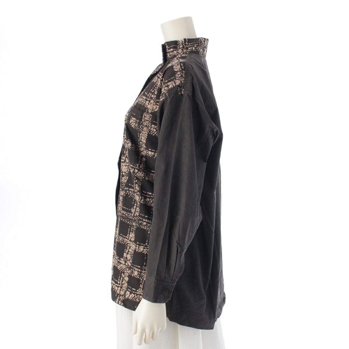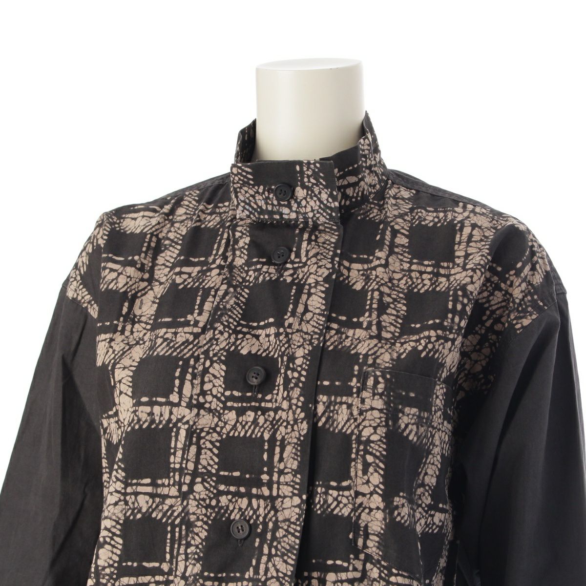 イッセイミヤケ コットン スタンドカラー 総柄 長袖シャツ JG14660 ブラウン M