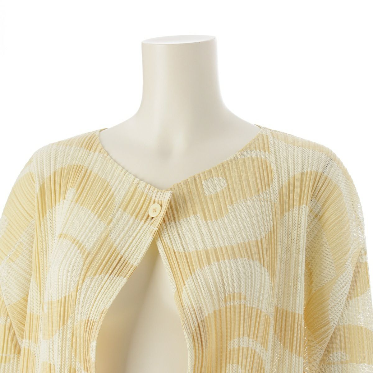 プリーツプリーズ イッセイミヤケ 数字 記号 総柄 シアー カーディガン トップス PP33-J0564 ベージュ 4