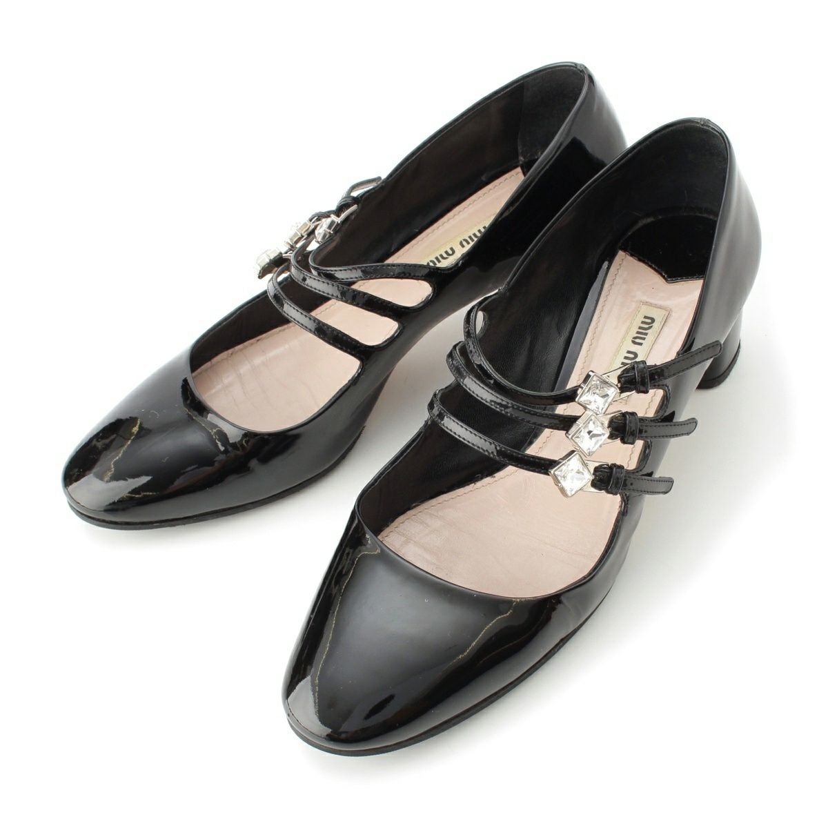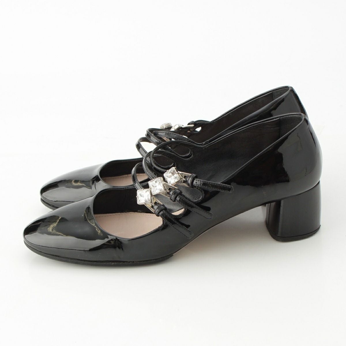 ミュウミュウ パテント ビジュー ヒール パンプス ブラック 38