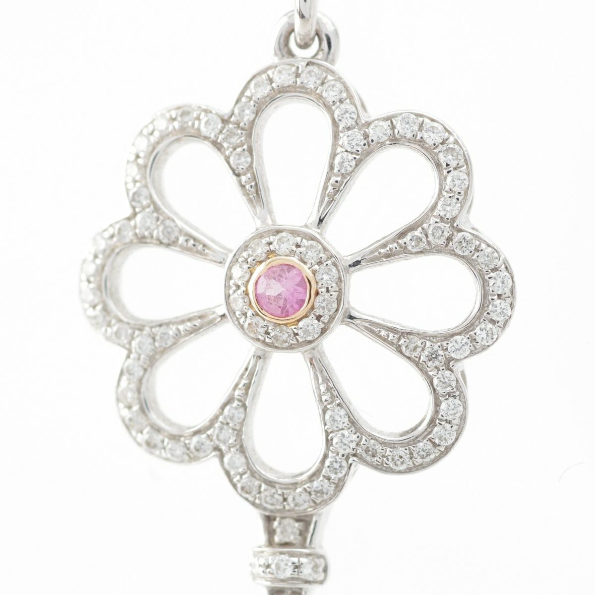 ノーブランド ダイヤ ピンクサファイア キー フラワー 鍵 ネックレス ペンダント K18WG D030 S005 ホワイトゴールド 5.6g