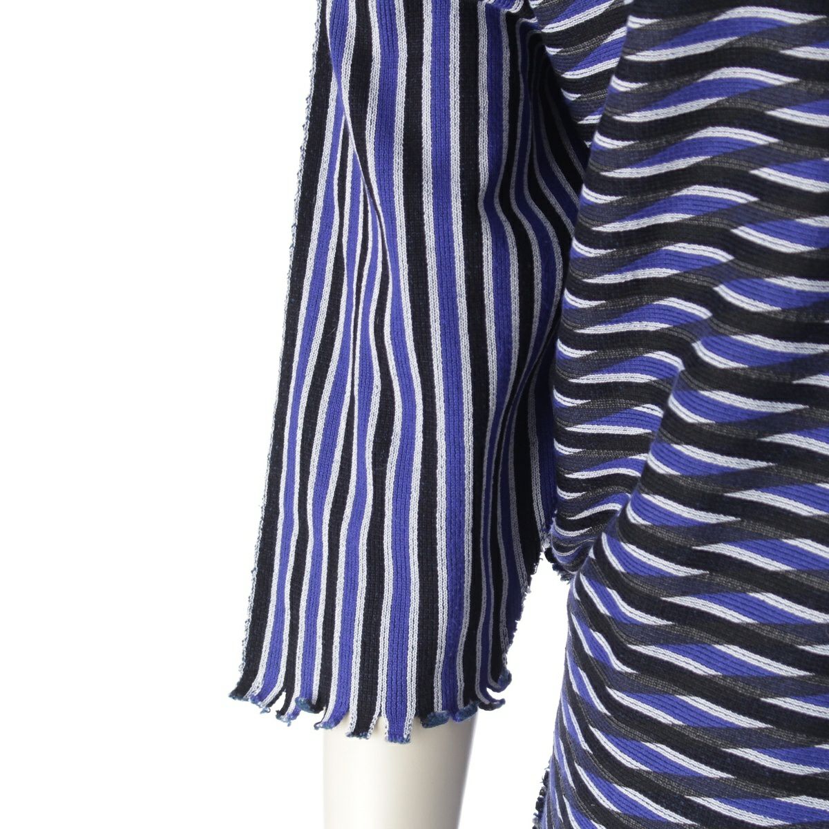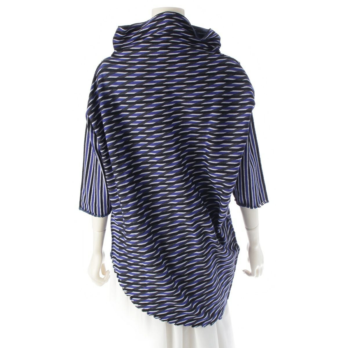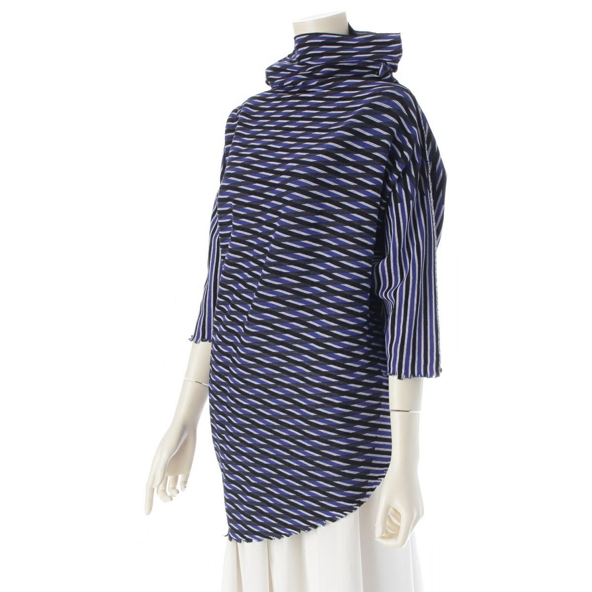 イッセイミヤケ 2016年 16AW ナイロン コットン ニット A-POC INSIDE 変形 モックネック カットソー トップス IM64KK704 ブラック ブルー 2