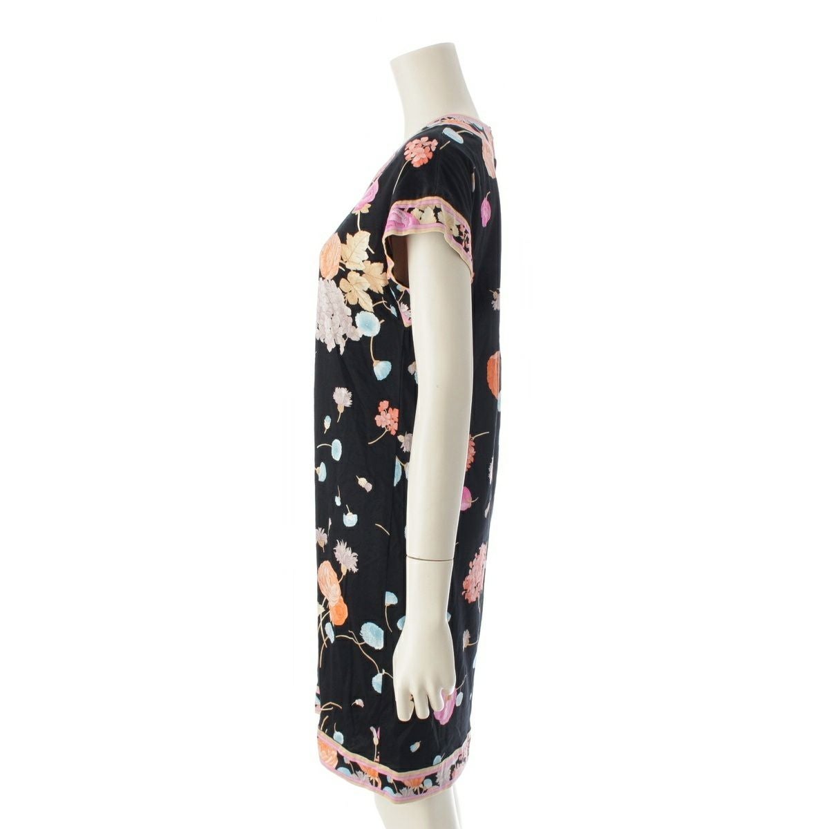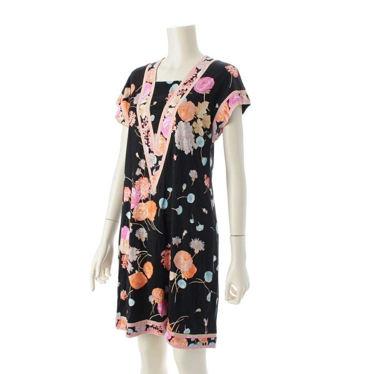 レオナール コットン フラワー 花柄 総柄 ワンピース ドレス ブラック M