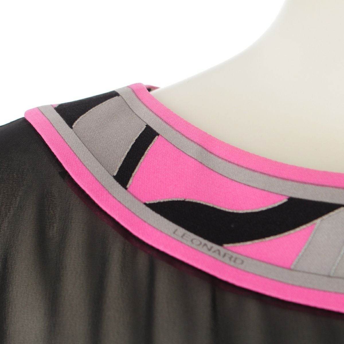 レオナール カンカン シースルー 切替 総柄 ワンピース ドレス 0160224 ピンク ブラック 36