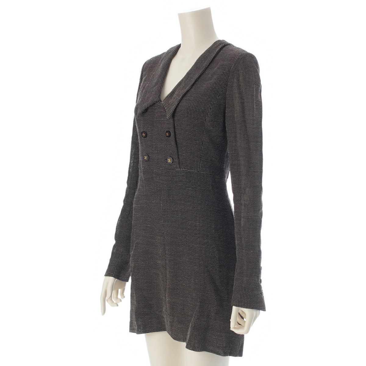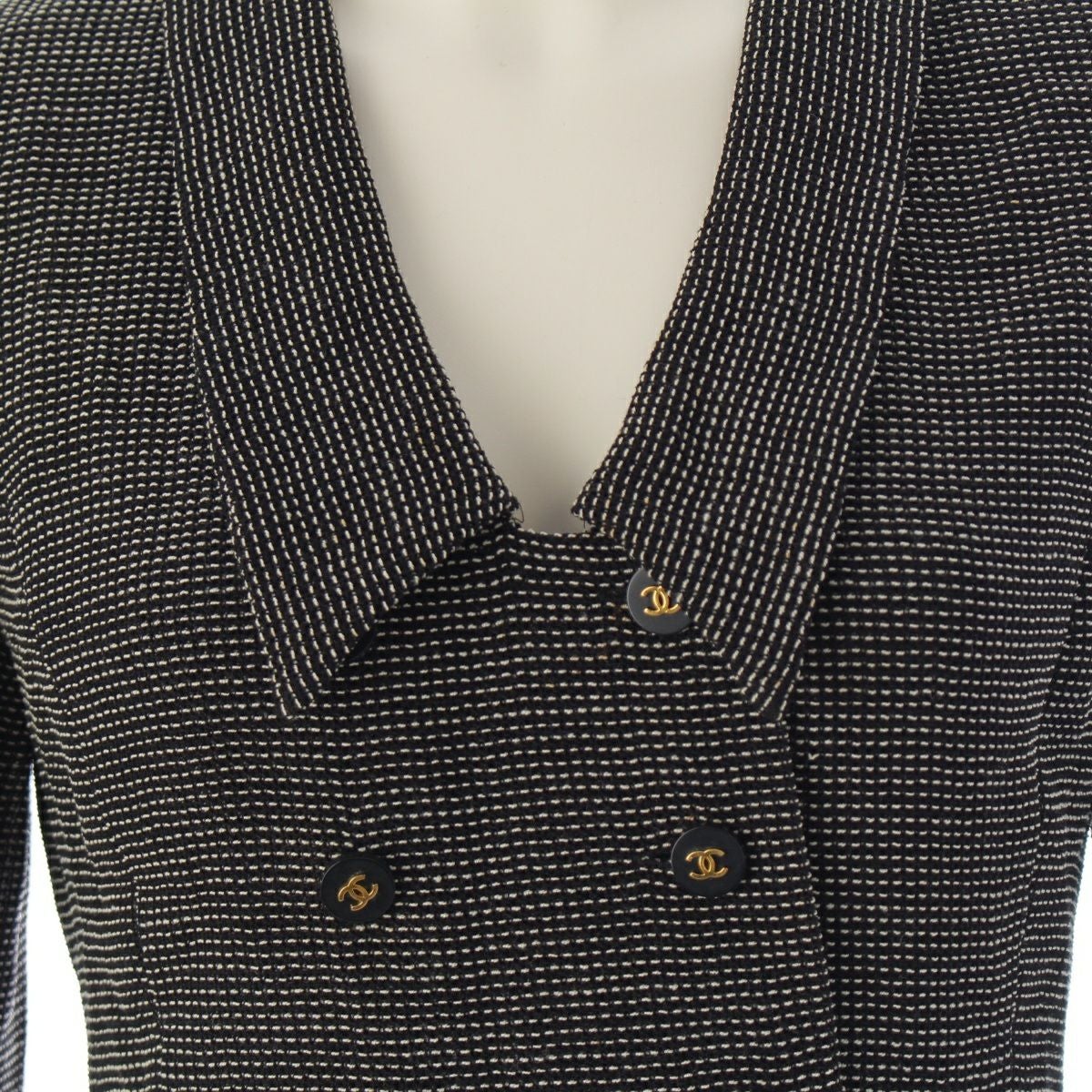シャネル ウール ヴィンテージ ココボタン ワンピース ドレス ブラック×ホワイト