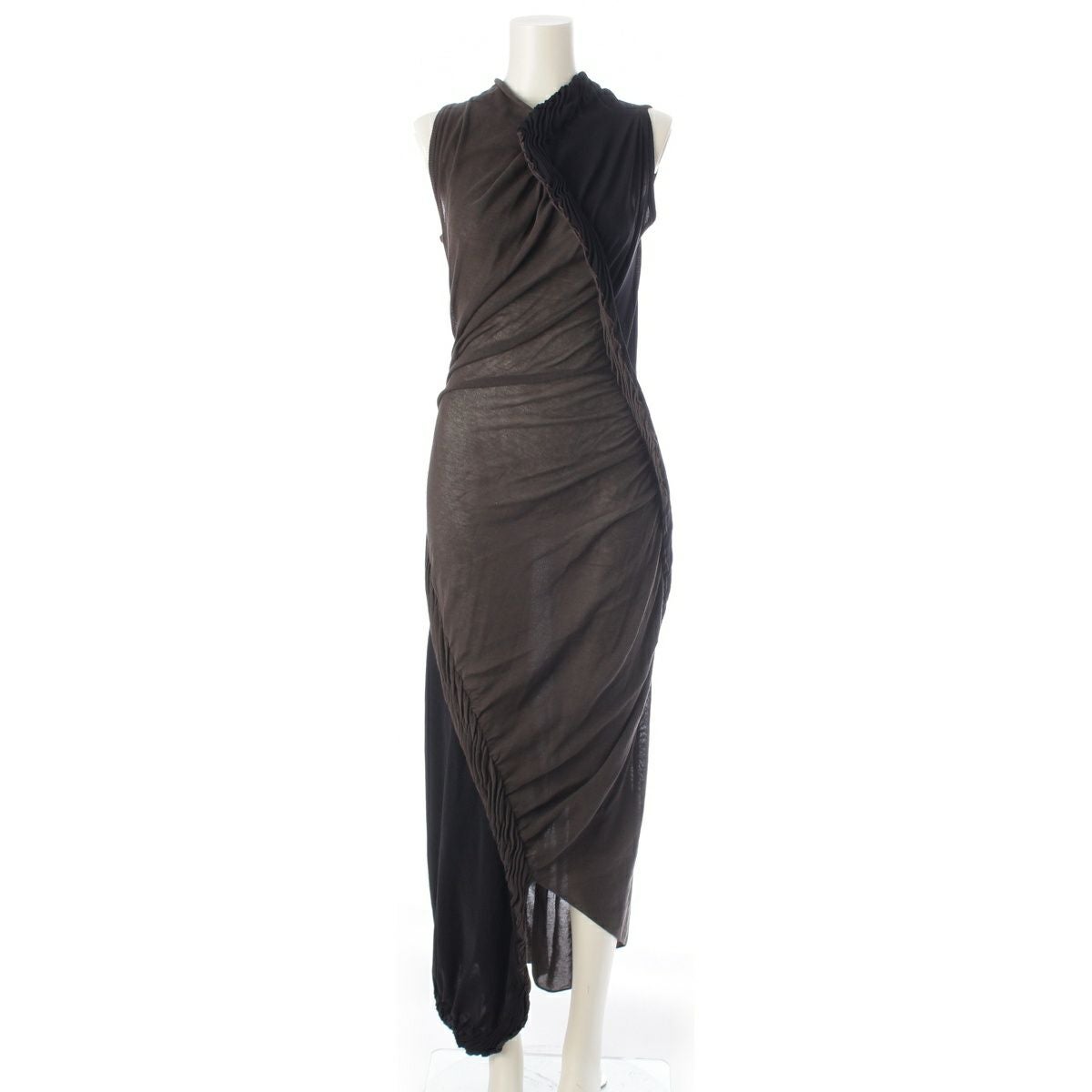 イッセイミヤケ 25年 BEANSTALK ノースリーブ ロング ワンピース ドレス IM51KH812 ブラック×カーキ 2