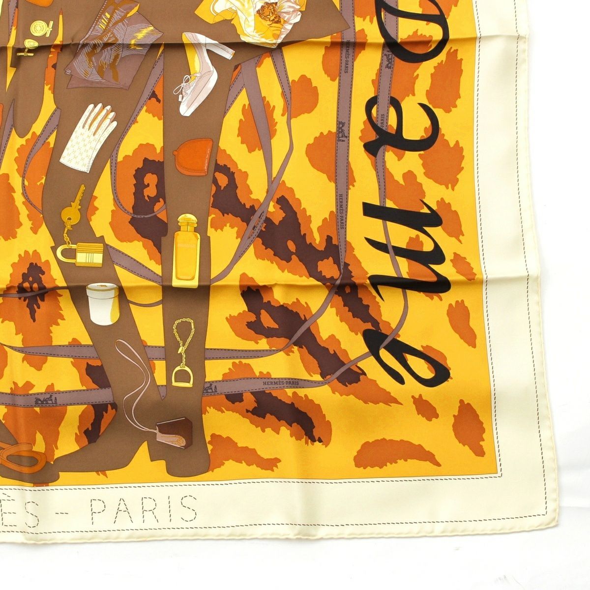 エルメス カレ90 MONSIEUR ET MADAME ムッシュ&マダム シルク スカーフ イエロー