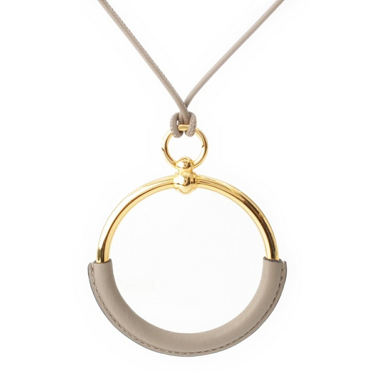 エルメス ループグラン ヴォースイフトレザー アルミニウムゴールド ネックレス グレージュ ゴールド