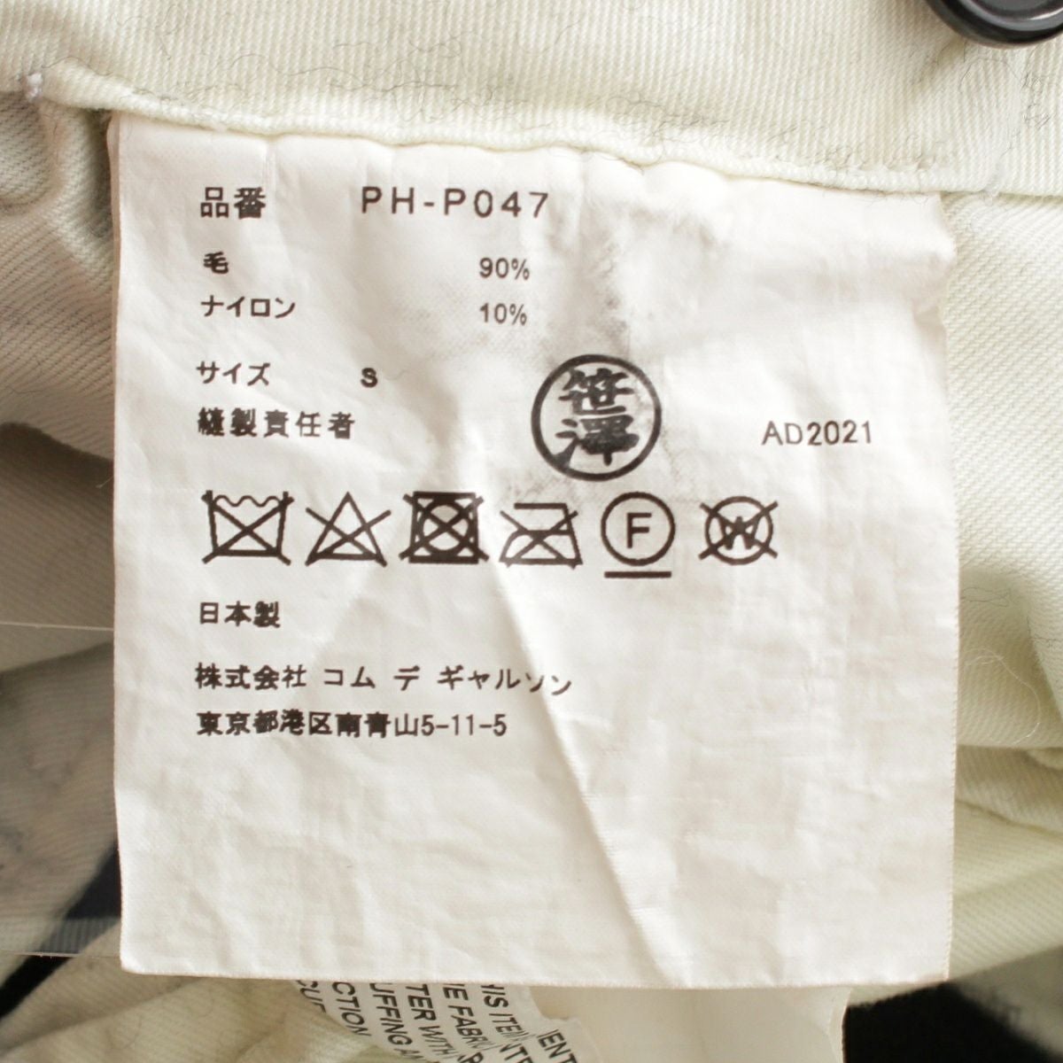 コムデギャルソンオムプリュス AD2021 ウール×ナイロン 縮絨 テーパード パンツ ボトムス PH-P047 ブラック S