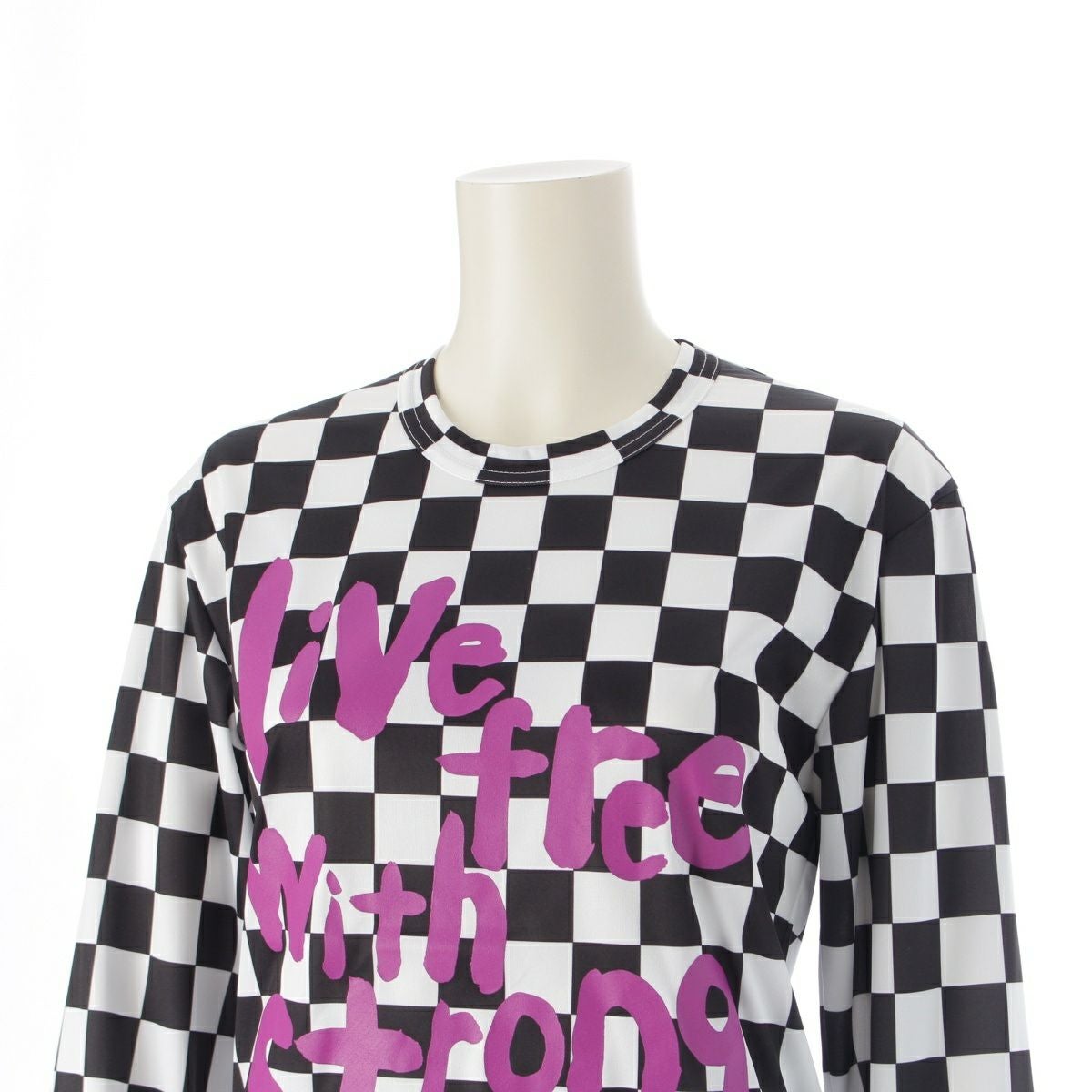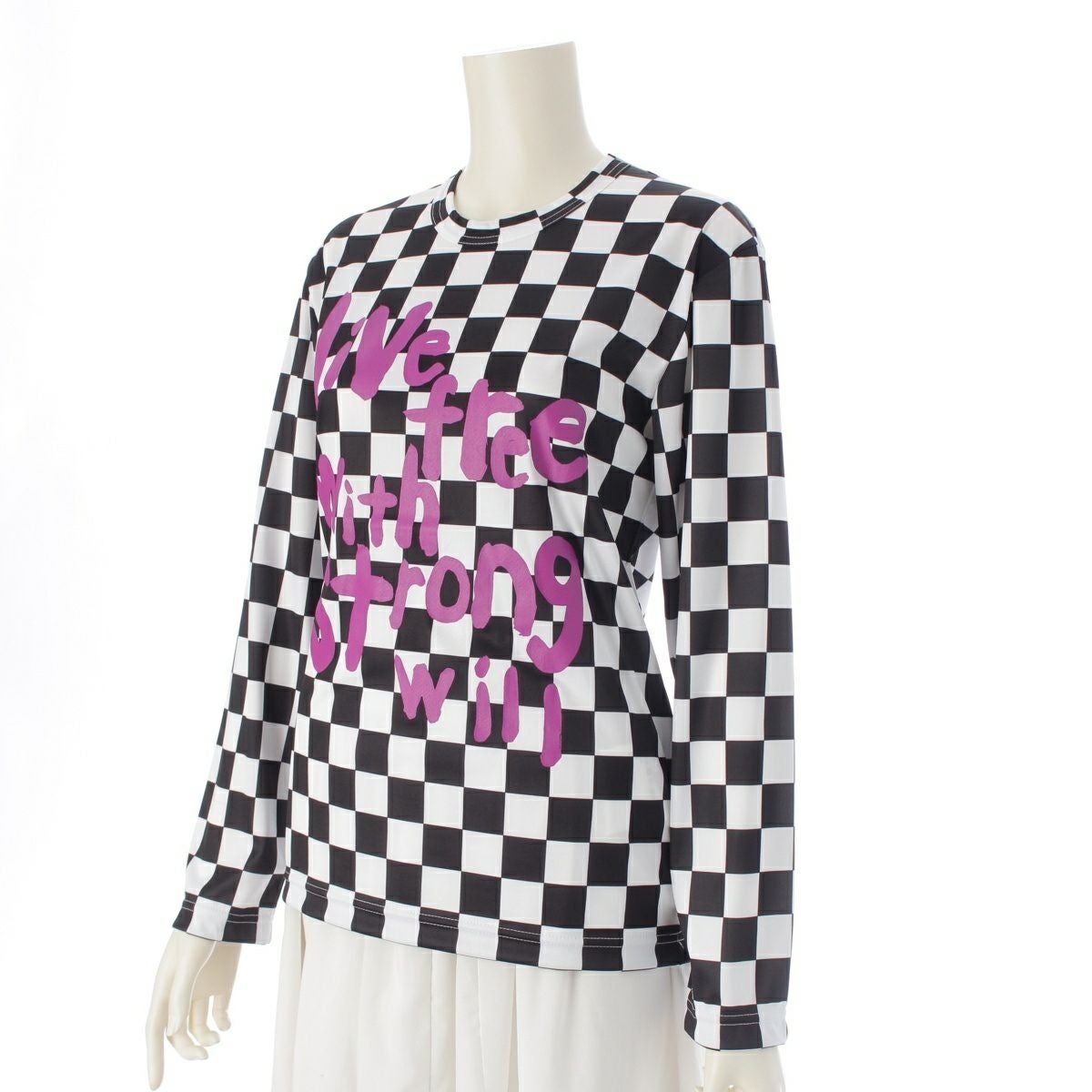 コムデギャルソン AD2023 メッセージプリント チェッカー カットソー RM-T025 ブラック×ホワイト×パープル XS