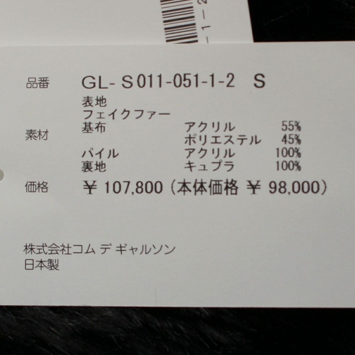 コムデギャルソン AD2023 フェイクファー ボリューム スカート スカート GL-S011 ブラック S