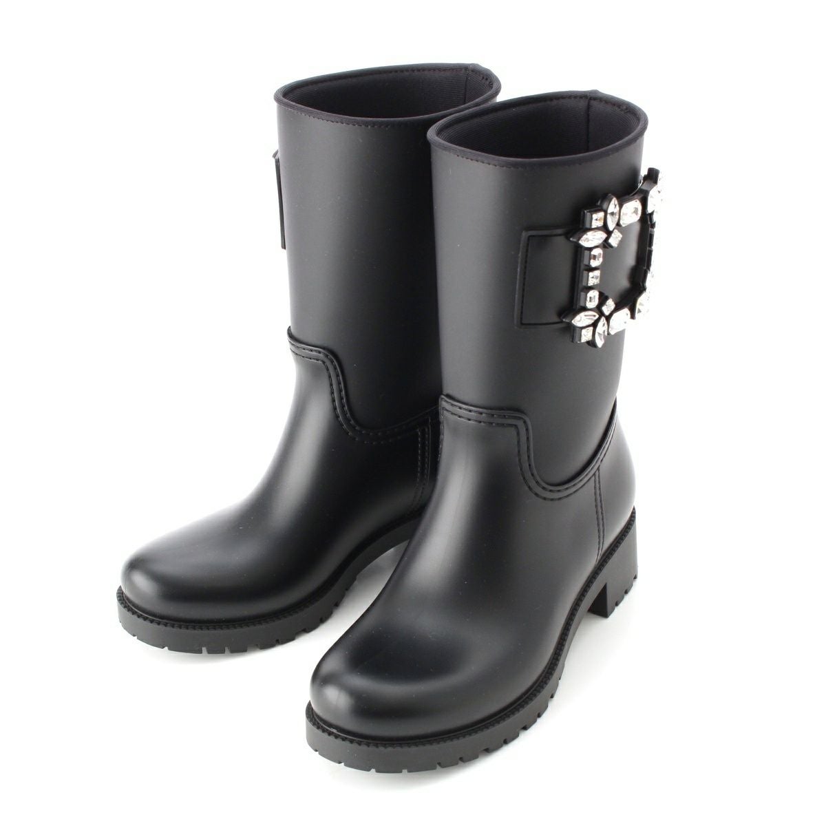 ロジェヴィヴィエ ラバー ストラスバックル ビジュー レインシューズ ブーツ ブラック 35