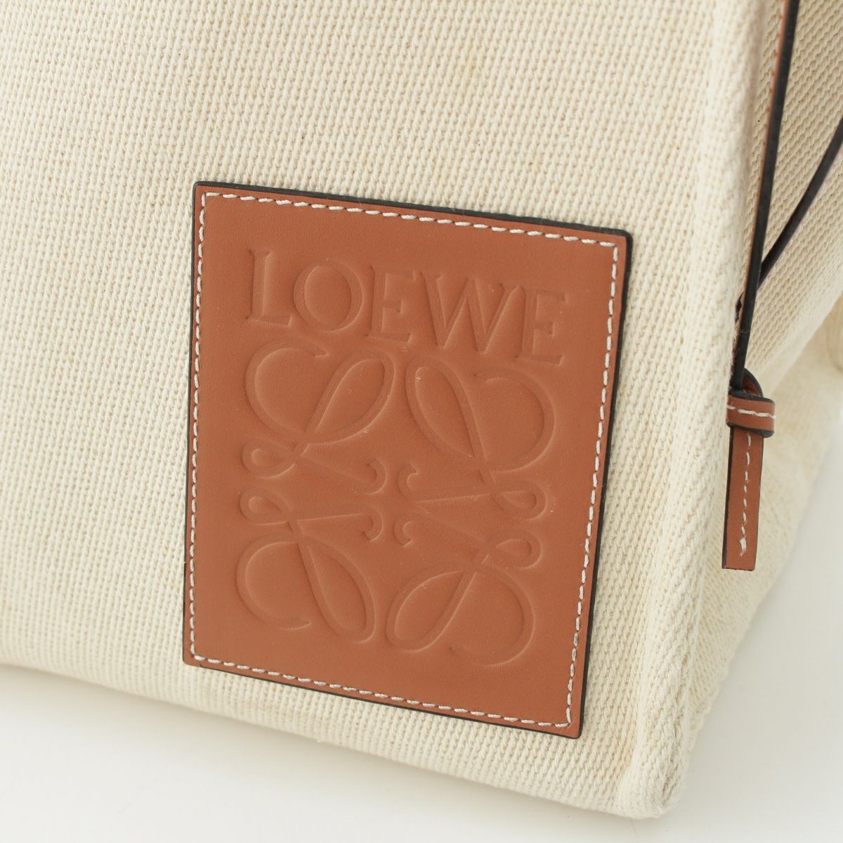 ロエベ クッショントート ラージ キャンバス アナグラム ロングショルダー トートバッグ ハンドバッグ 330.02AB90 ベージュ ブラウン