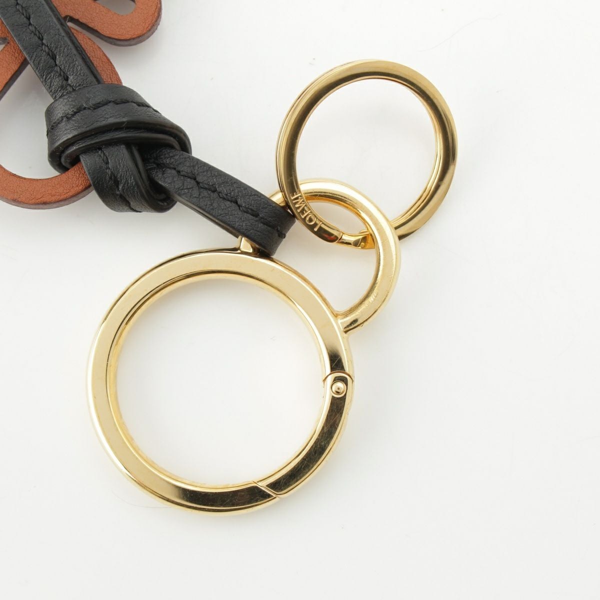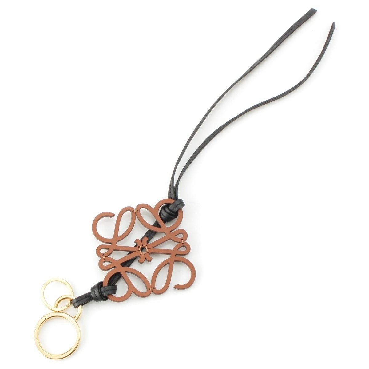 ロエベ レザー アナグラム バッグチャーム ストラップ C621232X83 タン ブラウン ブラック