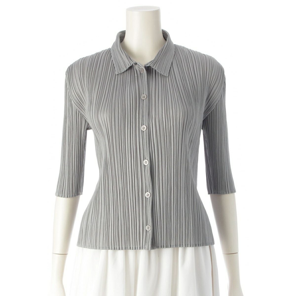 プリーツプリーズ イッセイミヤケ 12年 五分袖 カーディガン シャツ トップス グレー 3