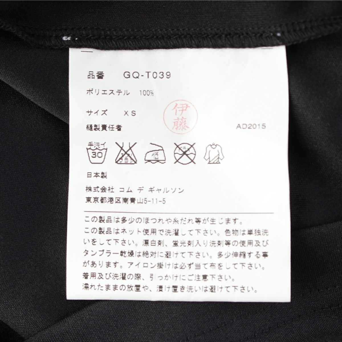 コムデギャルソン AD2015 16SS リボンデザイン 半袖Tシャツ クルーネック トップス GQ-T039 ブラック XS
