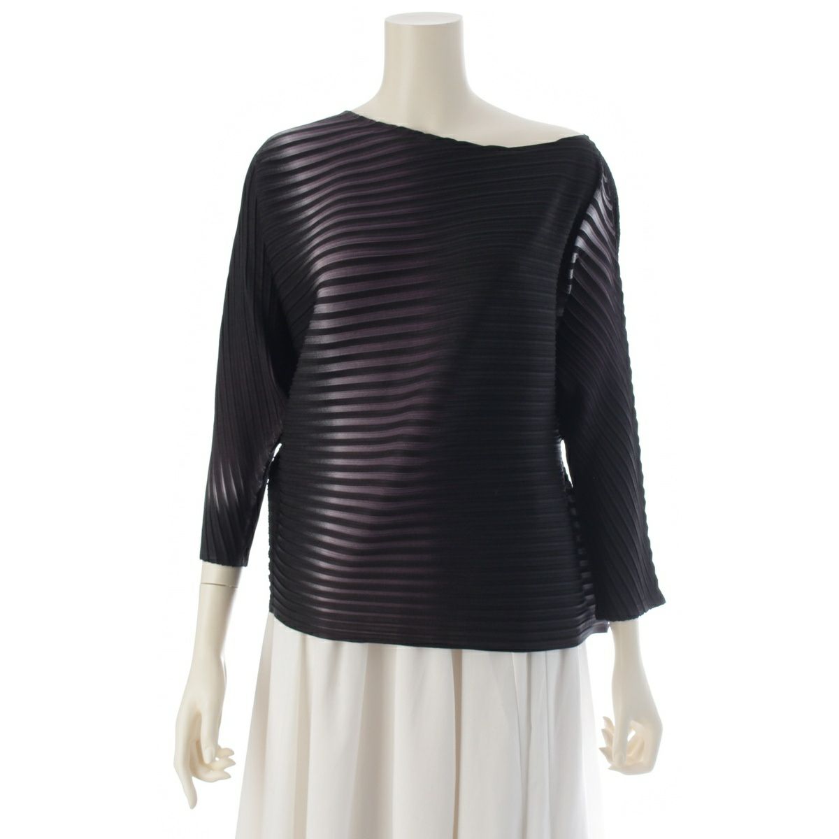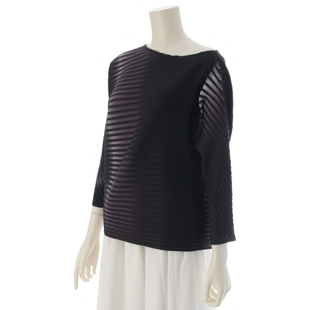 イッセイミヤケ 斜め バイアスプリーツ グラデーション 変型 トップス IM41JK112 ブラック ホワイト 2
