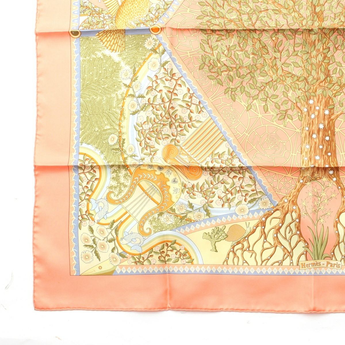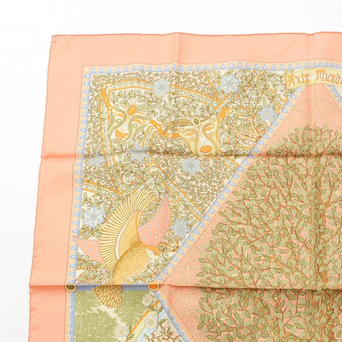 エルメス カレ90 シルク AXIS MUNDI アクシスムンディ 世界の中心軸 鳥 木 スカーフ コーラル