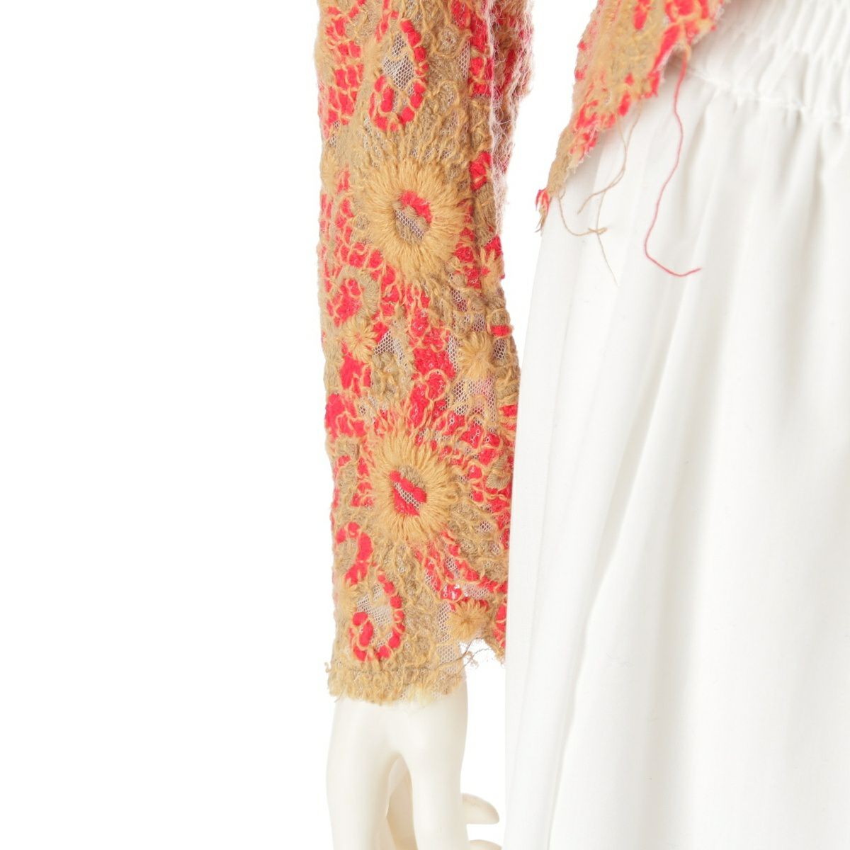 コムデギャルソン AD2003 コットン ウール 総刺繍 レース 燕尾 テーラードジャケット トップス GM-J009 ブラウン レッド S