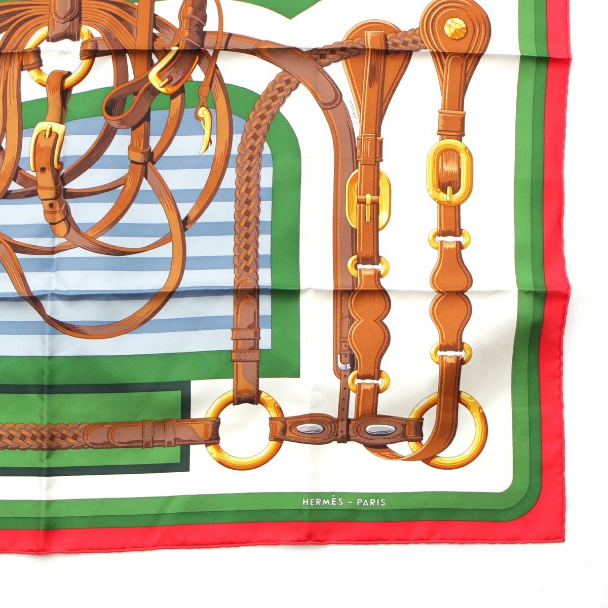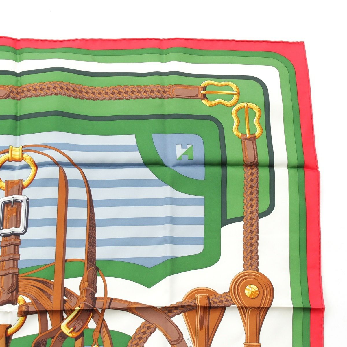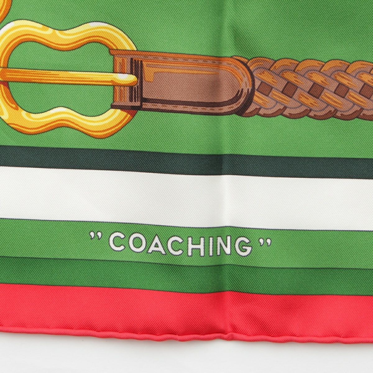 エルメス 23年 カレ90 COACHING コーチング シルク スカーフ レッド ホワイト グリーン マルチカラー