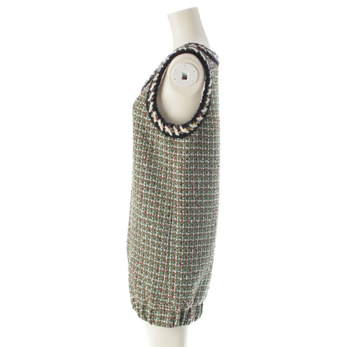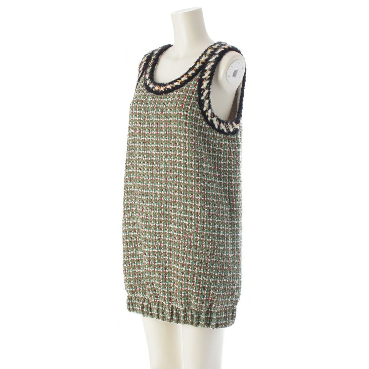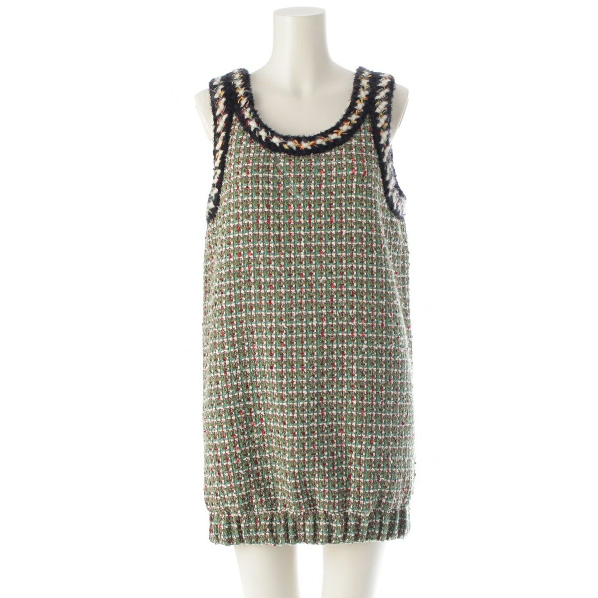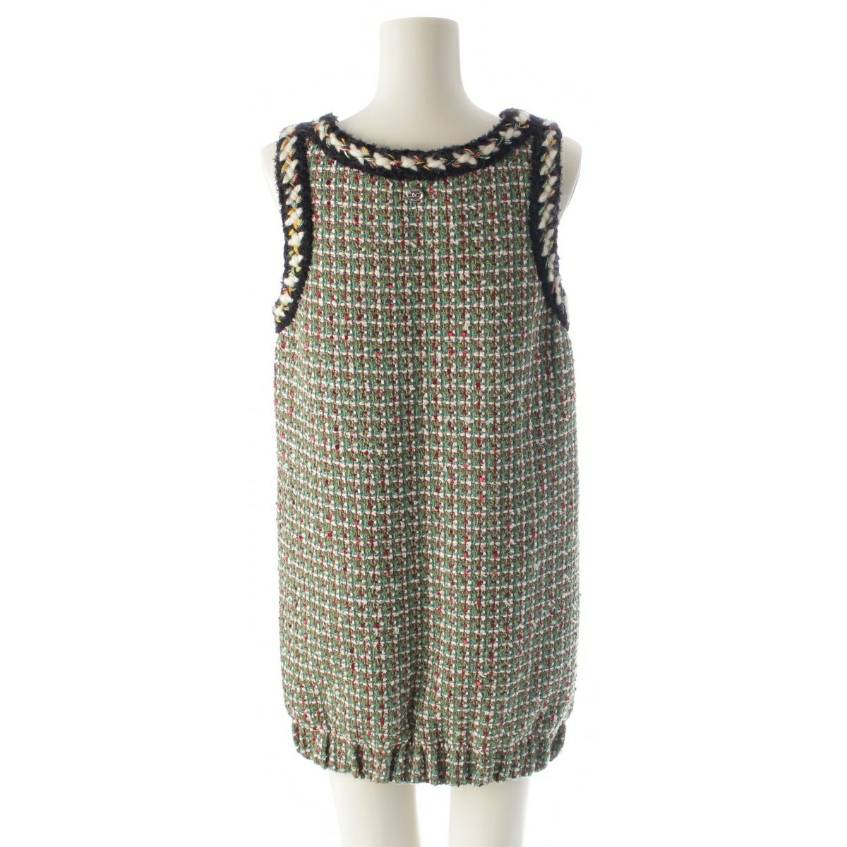 シャネル ココボタン ツイード ノースリーブ ワンピース ドレス P75267 グリーン 36
