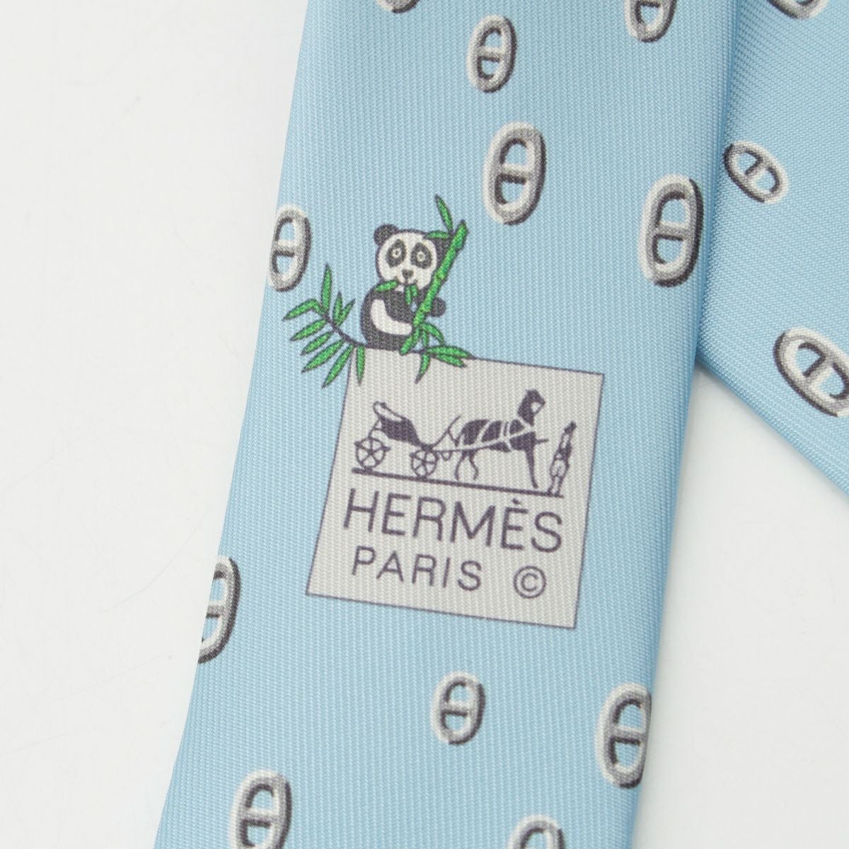 エルメス シルク MAILLON PANDA シェーヌダンクル パンダ ネクタイ 6310PA ライトブルー