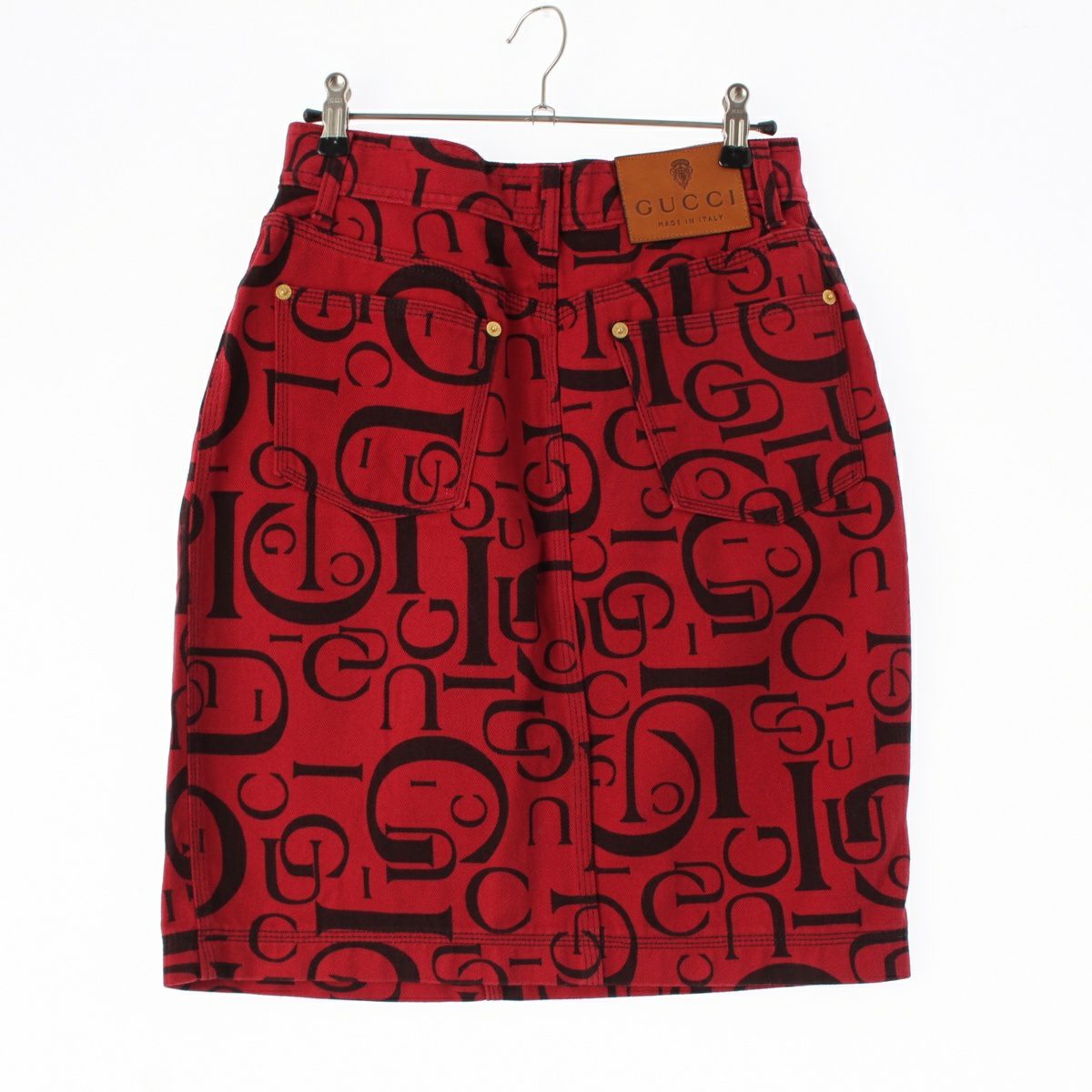 グッチ デニム 総柄 スカート トムフォード期 ロゴ ボトムス レッド 42