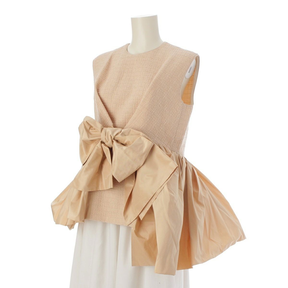 ドゥロワー 22SS シルクタフタ ツイード ノースリーブ チュニック ブラウス 6521-299-0998 ベージュ