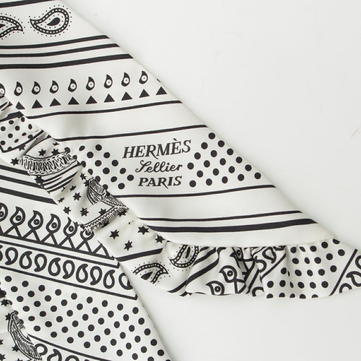 エルメス ツイリー シルク フリル エプロンドール スカーフ H852978S ホワイト