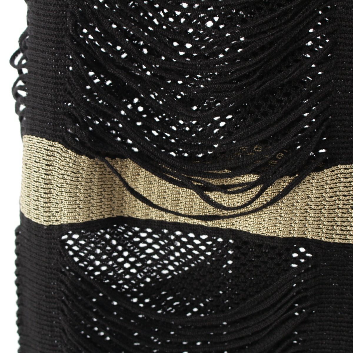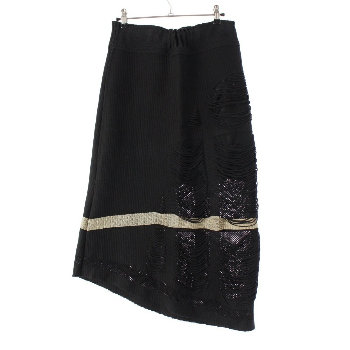 イッセイミヤケ 2008年 08AW A-POC INSIDE コットン ナイロン フリンジ デザイン スカート ボトムス IF84KG572 ブラック ゴールド 2