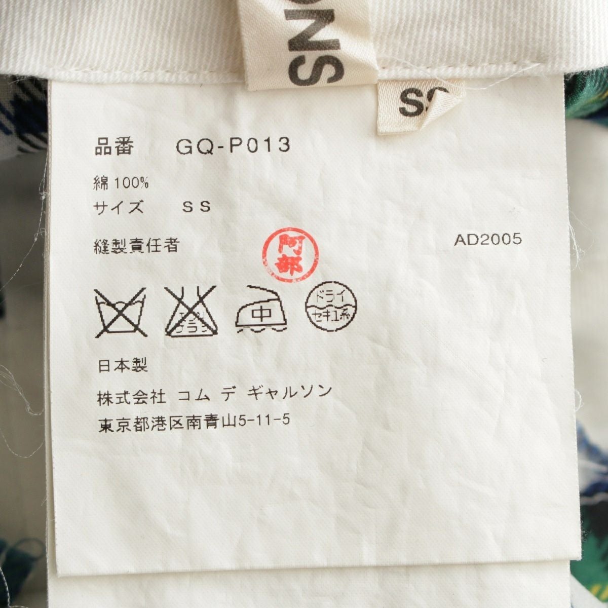 コムデギャルソン AD2005 06SS コットン チェック ワイド サルエルパンツ ボトムス GQ-P013 ホワイト グリーン ブルー マルチカラー SS