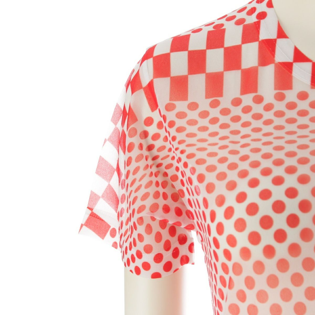 コムデギャルソン 2001年 ドット チェッカー シアー トップス ホワイト レッド
