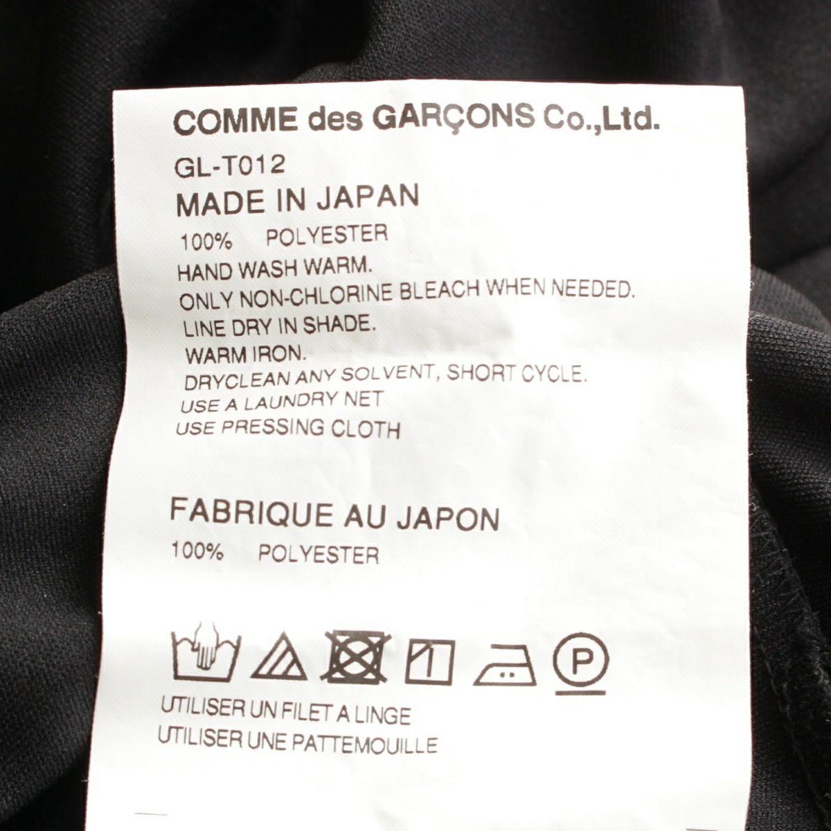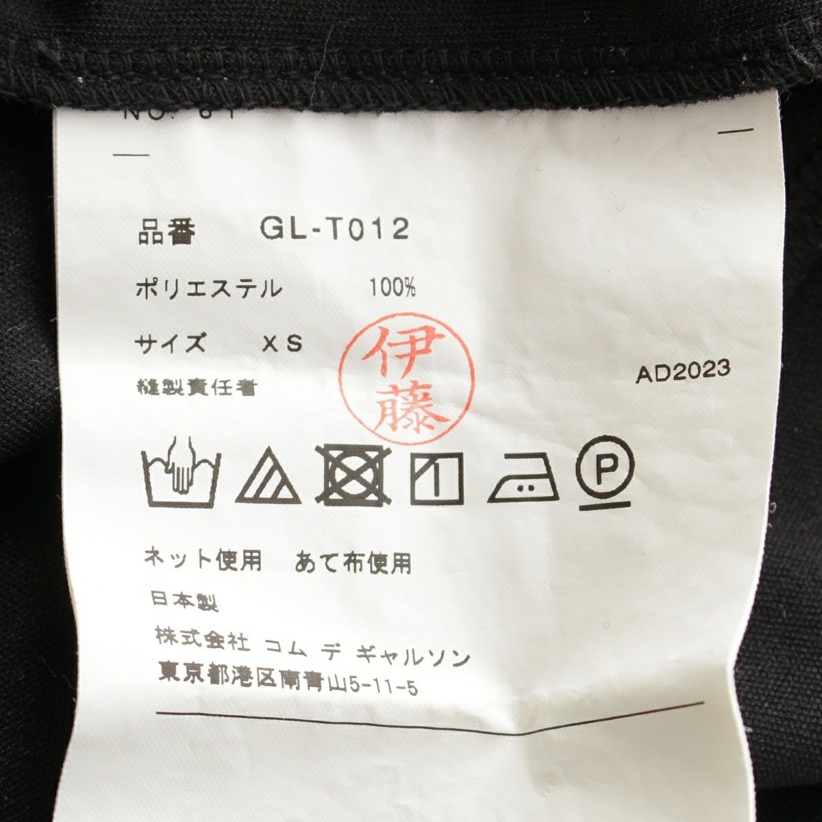 コムデギャルソン AD2023 23AW デザインヘム ショートスリーブ トップス GL-T012 ブラック XS