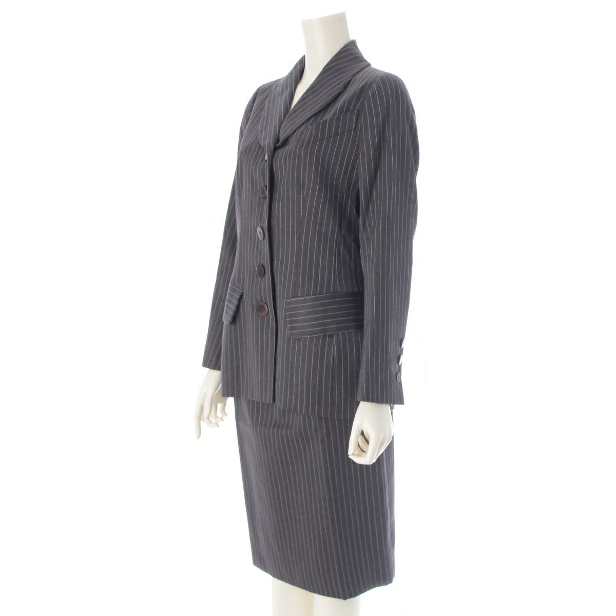 セリーヌ ウール ストライプ スーツ セットアップ ジャケット スカート ボトムス グレー 38
