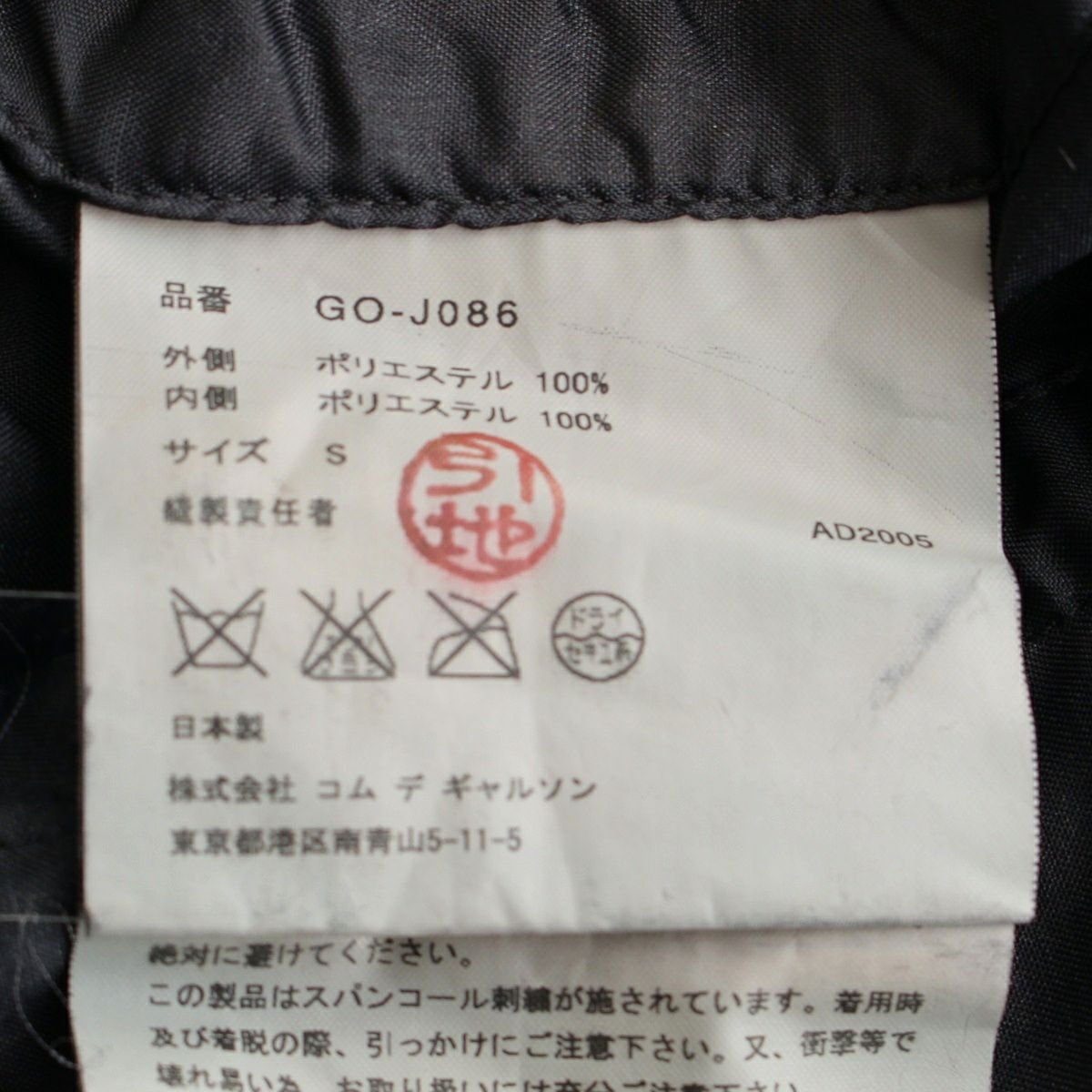 コムデギャルソン AD2005 05SS ポリエステル スパンコール 変形 テーラードジャケット GO-J086 ブラック S
