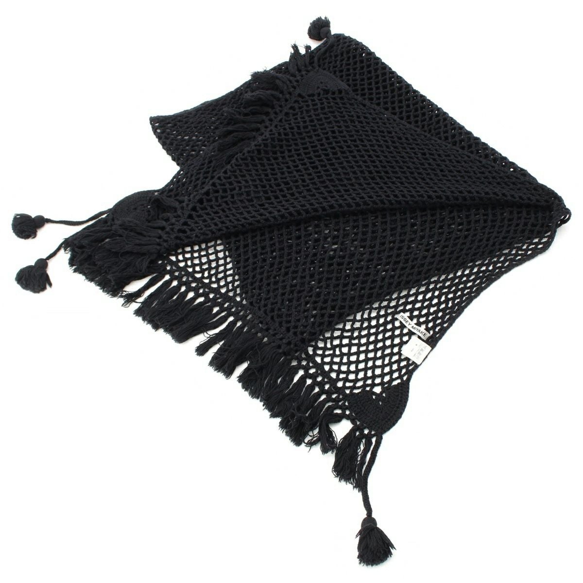 イッセイミヤケ コットン 大判 ニット タッセル ストール マフラー IM41AD101 ブラック