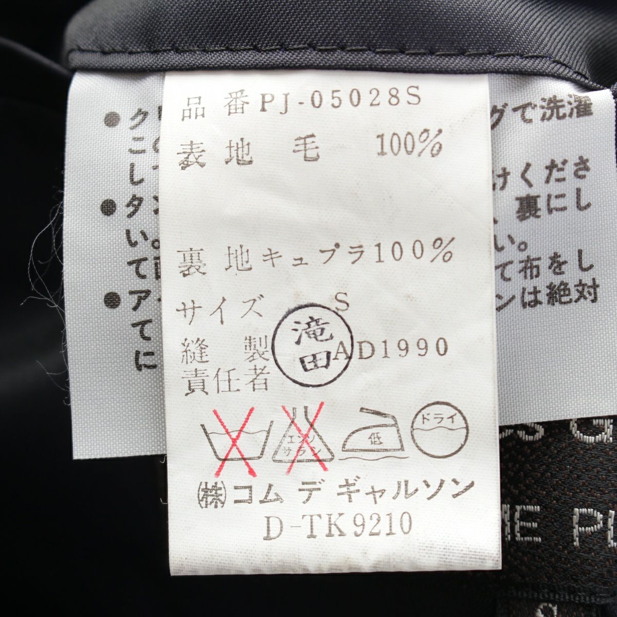 コムデギャルソンオムプリュス 90AW AD1990 ウール 袖切替 テーラードジャケット アウター PJ-05028S ネイビー S