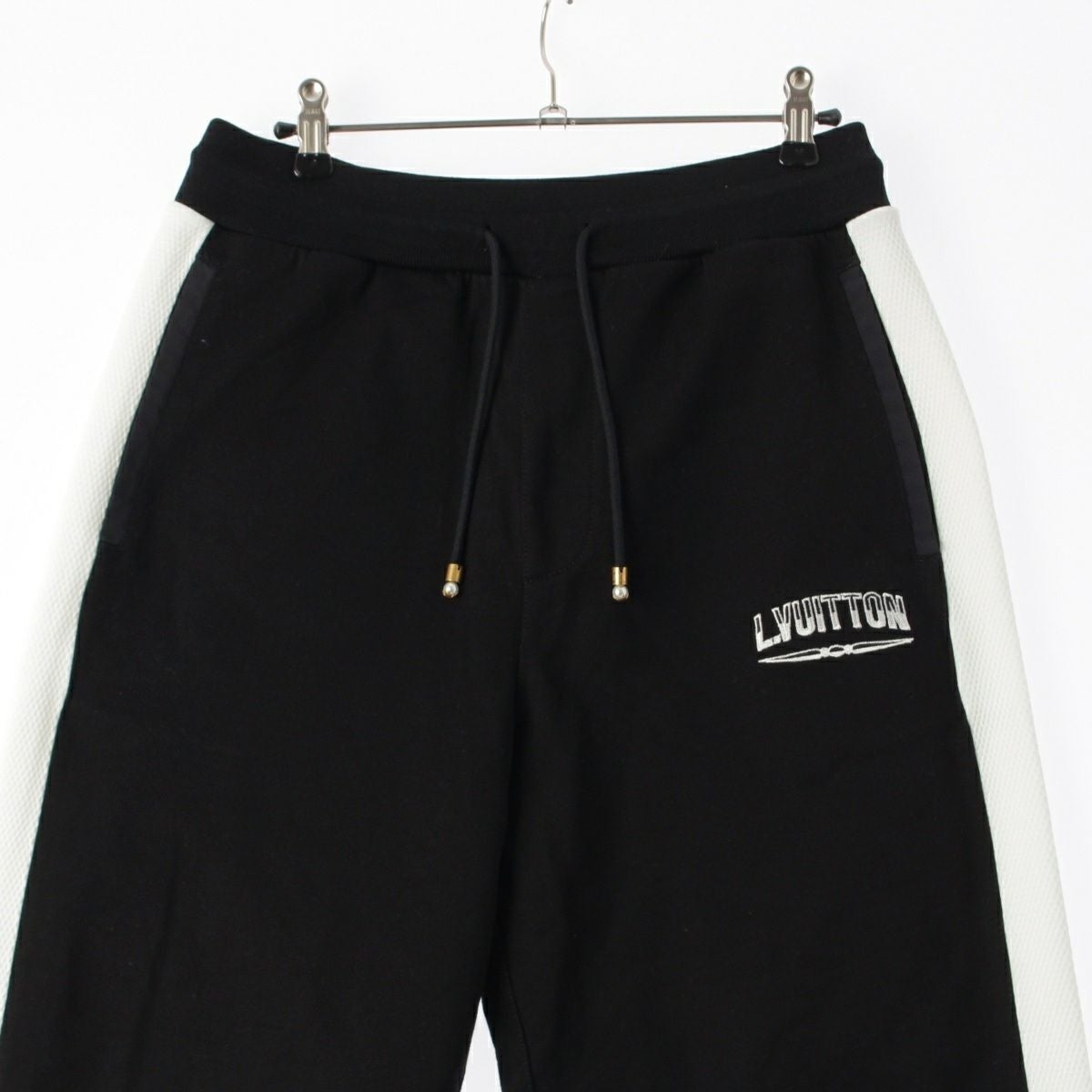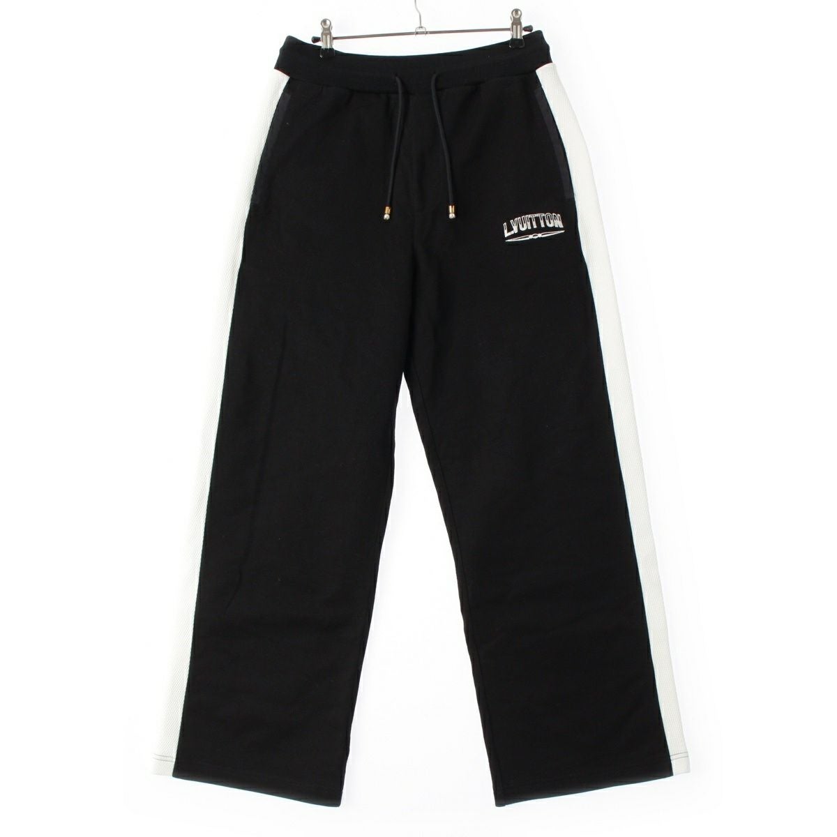 ルイヴィトン 2025 コットン×ナイロン ロゴ刺繍 サイドライン ジャージー ジョガー パンツ ボトムス ブラック×ホワイト M