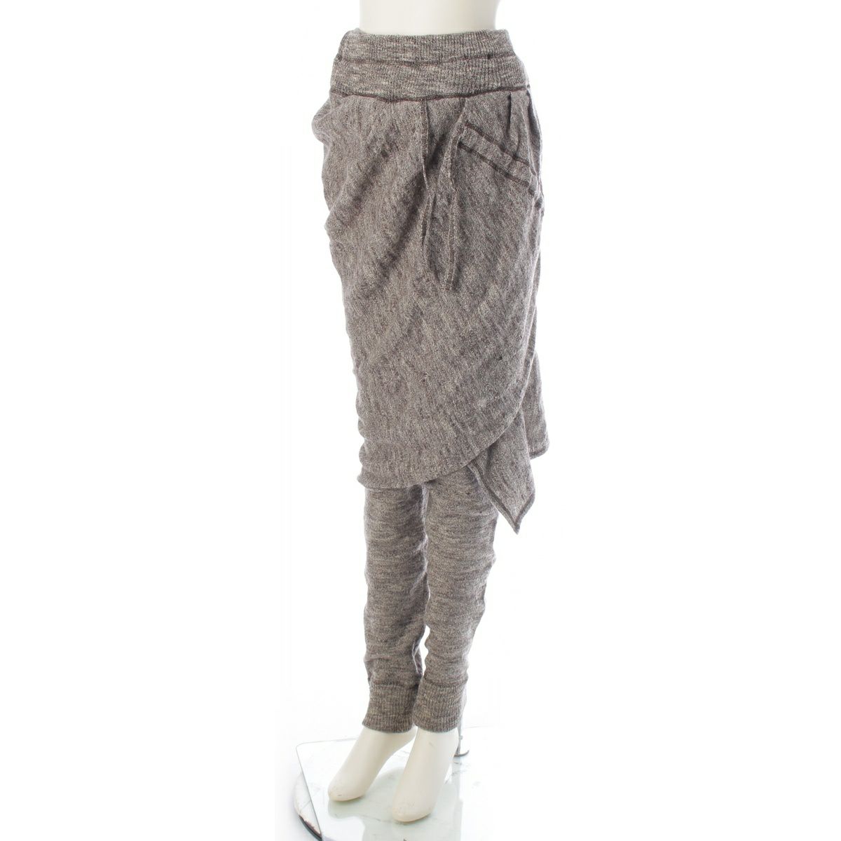 イッセイミヤケ ウール シルク混 筆タグ 変形 ニット 長袖トップス タンクトップ スカート パンツセットアップ 4ピース ブラウン グレージュ 9