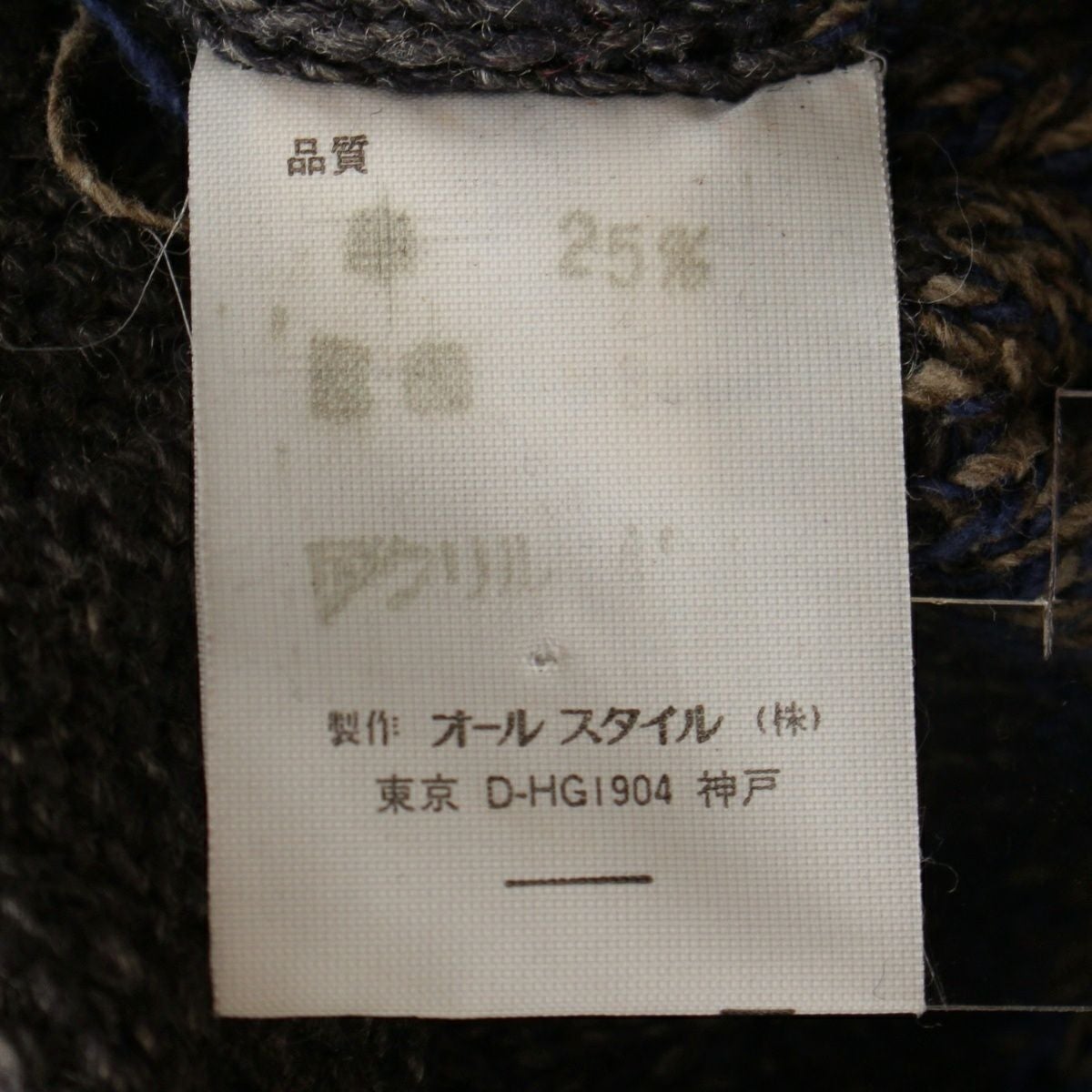 素材組成表示タグあり(印字薄れにより読み取り不可)