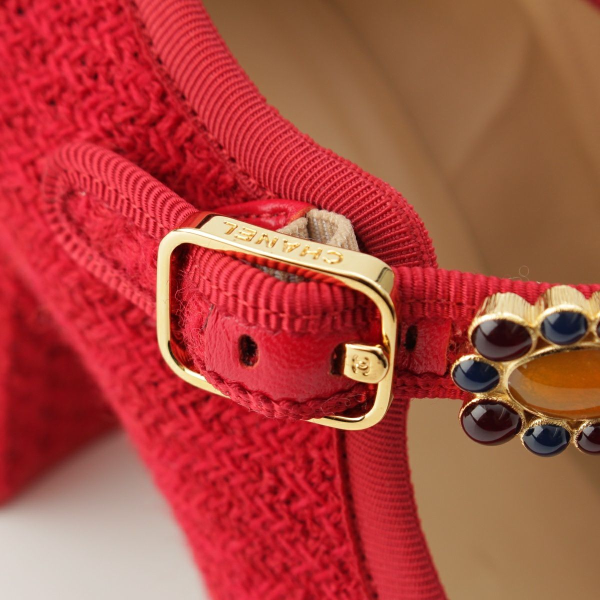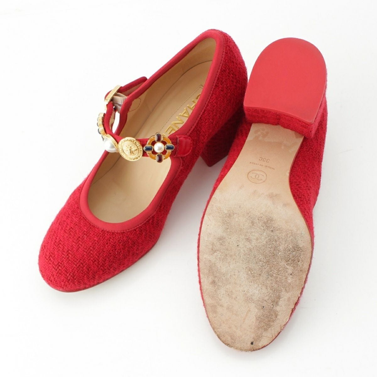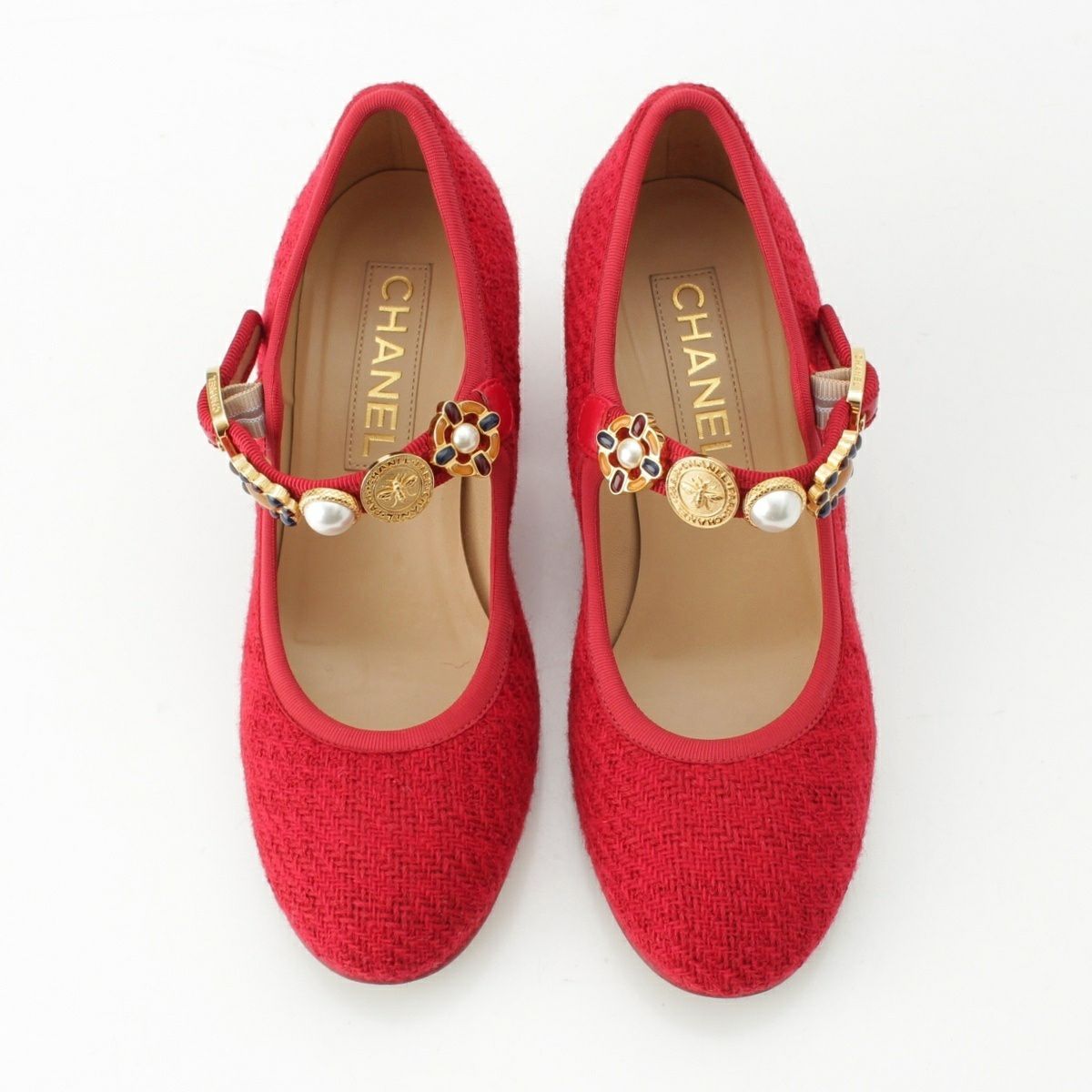 シャネル 24AW ツイード アイコン メリージェーン パンプス G45777 レッド 38
