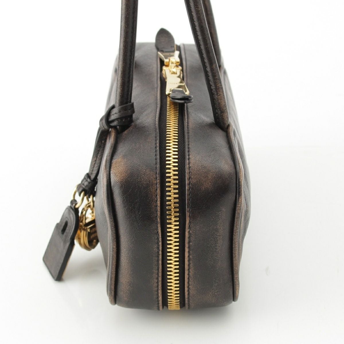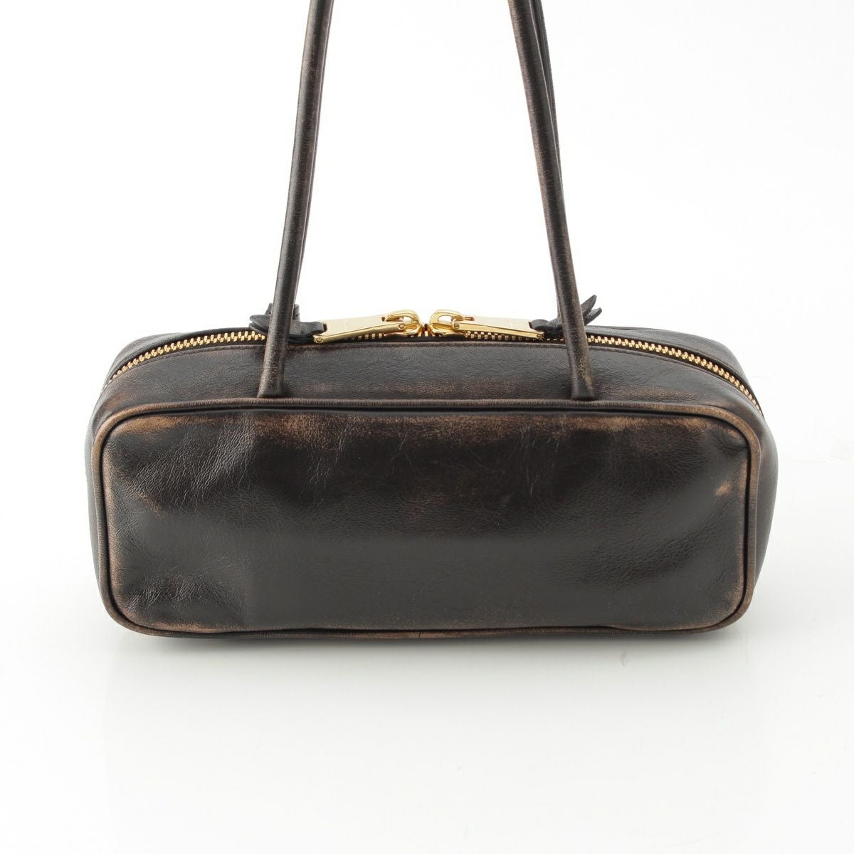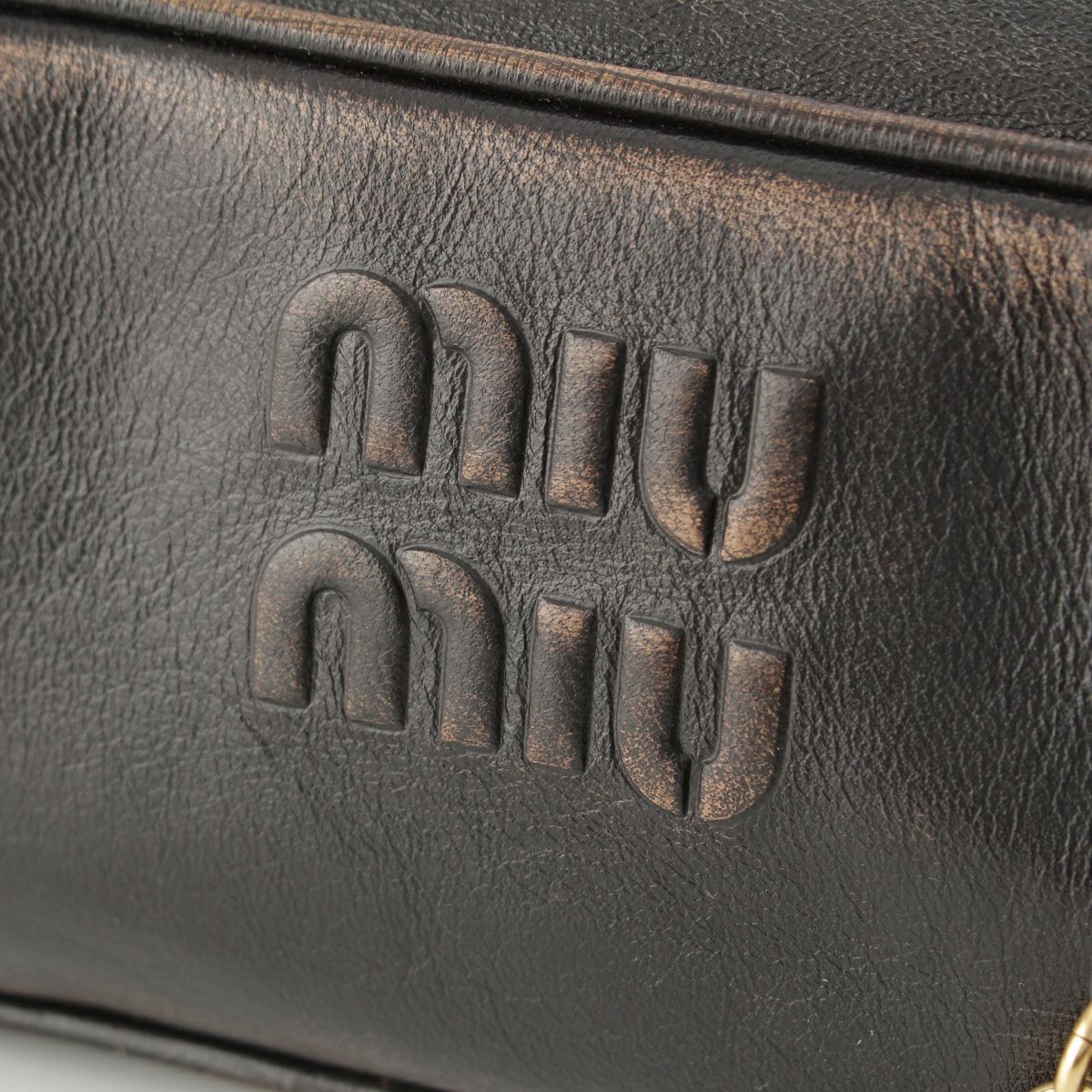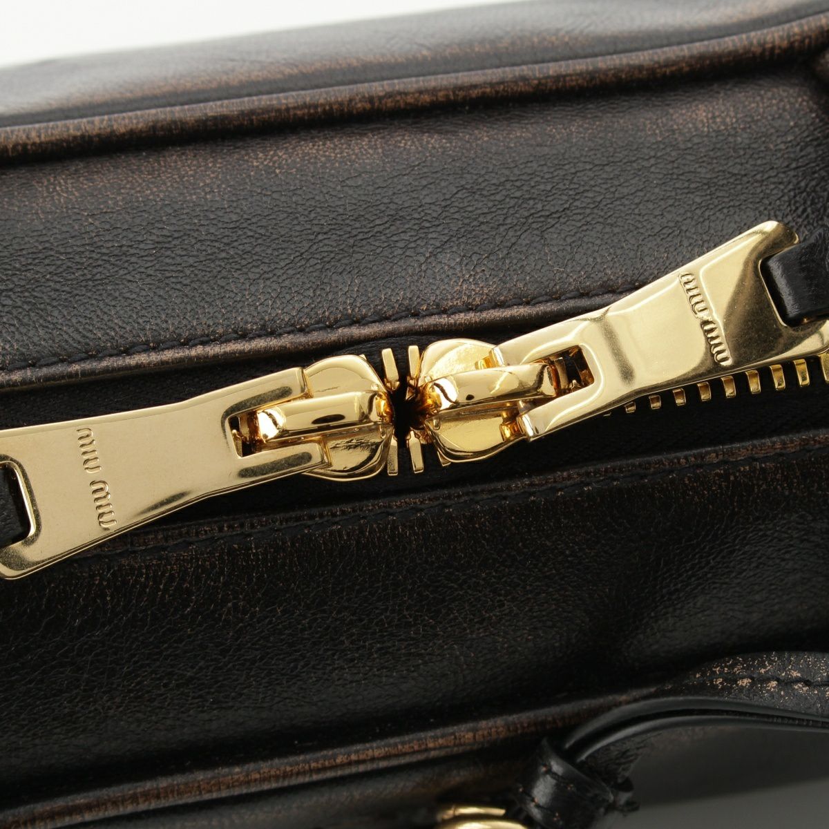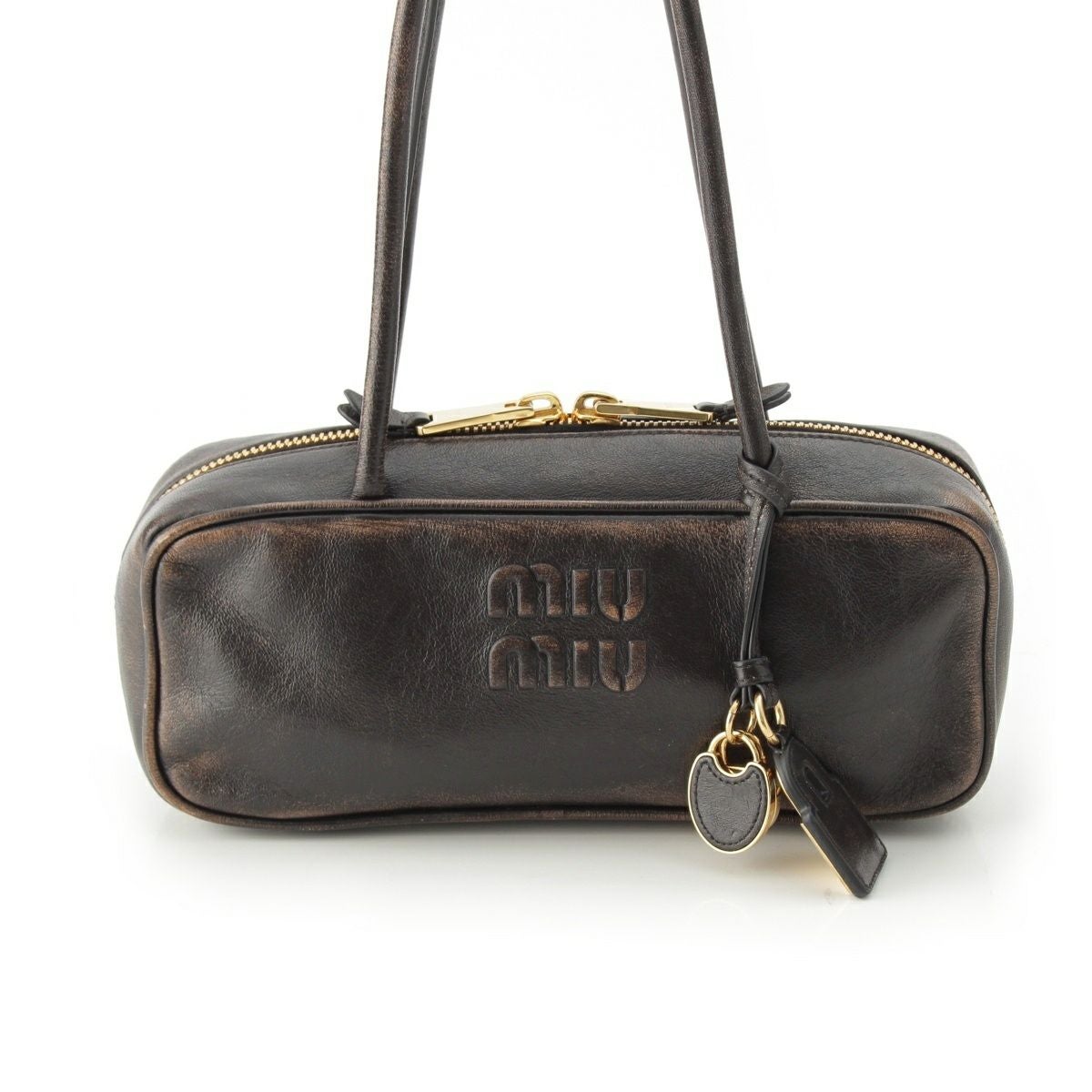 ミュウミュウ 2025 ナッパレザー ヴィンテージ加工 ボー スモール ハンドバッグ 5BB173 ダークブラウン